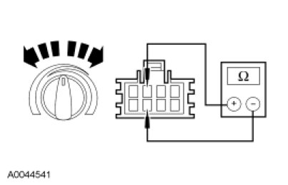- Measure the resistance between temperature blend door actuator C2091-7, circuit CBP20 (YE/VT), harness side and C2091-3, circuit CH439 (GY/VT), harness side while rotating the temperature control potentiometer from full WARM to full COOL.
