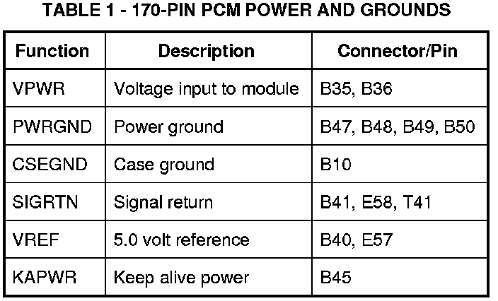 Table 1 - 170-Pin PCM Power And Grounds: