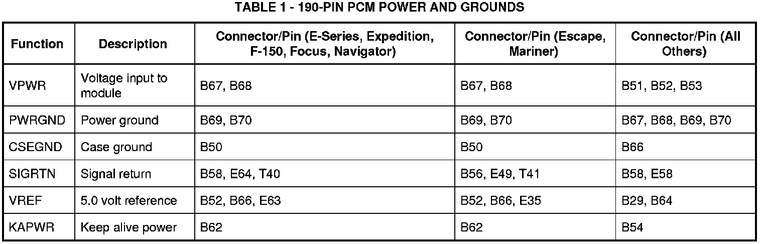 Table 1 - 190-Pin PCM Power And Grounds: