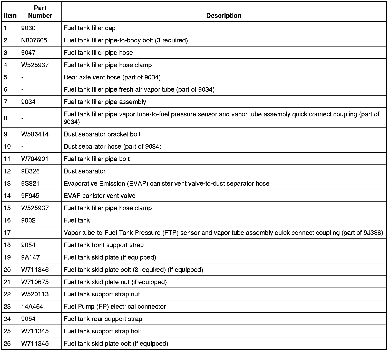 Fuel Tank and Filler Pipe - Exploded View