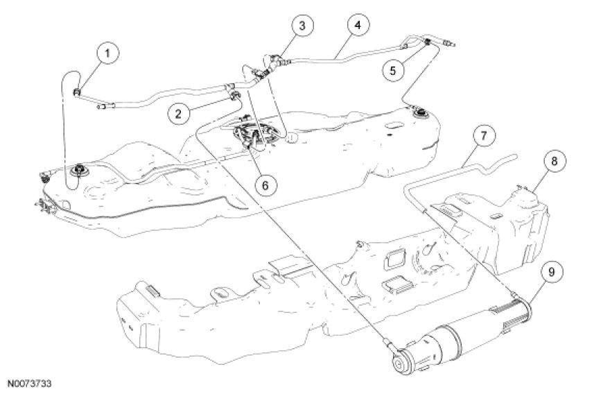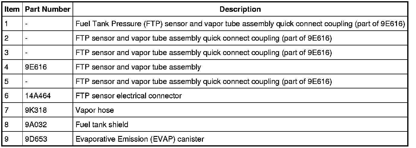 4. Disconnect the 3 FTP sensor and vapor tube assembly quick connect couplings from the Fuel Pump (FP) module and the vapor vent valves.