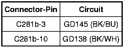 - Measure the resistance between the 4X4 control module C281a-10, circuit VDB04 (WH/BU), harness side and the DLC C251-6, circuit VDB04 (WH/BU), harness side.