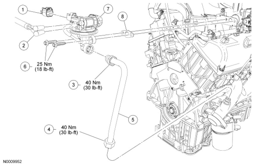 Exhaust Gas Recirculation (EGR) System Components - Exploded View, 4.0L SOHC