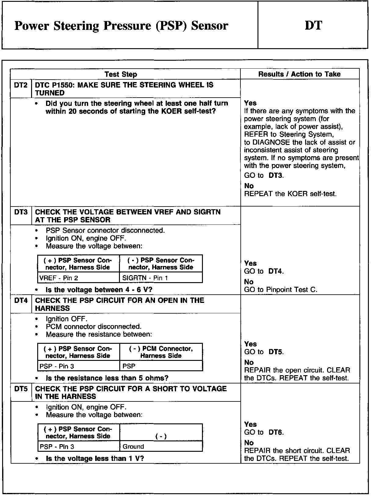 PINPOINT TEST DT: POWER STEERING PRESSURE (PSP) SENSOR
