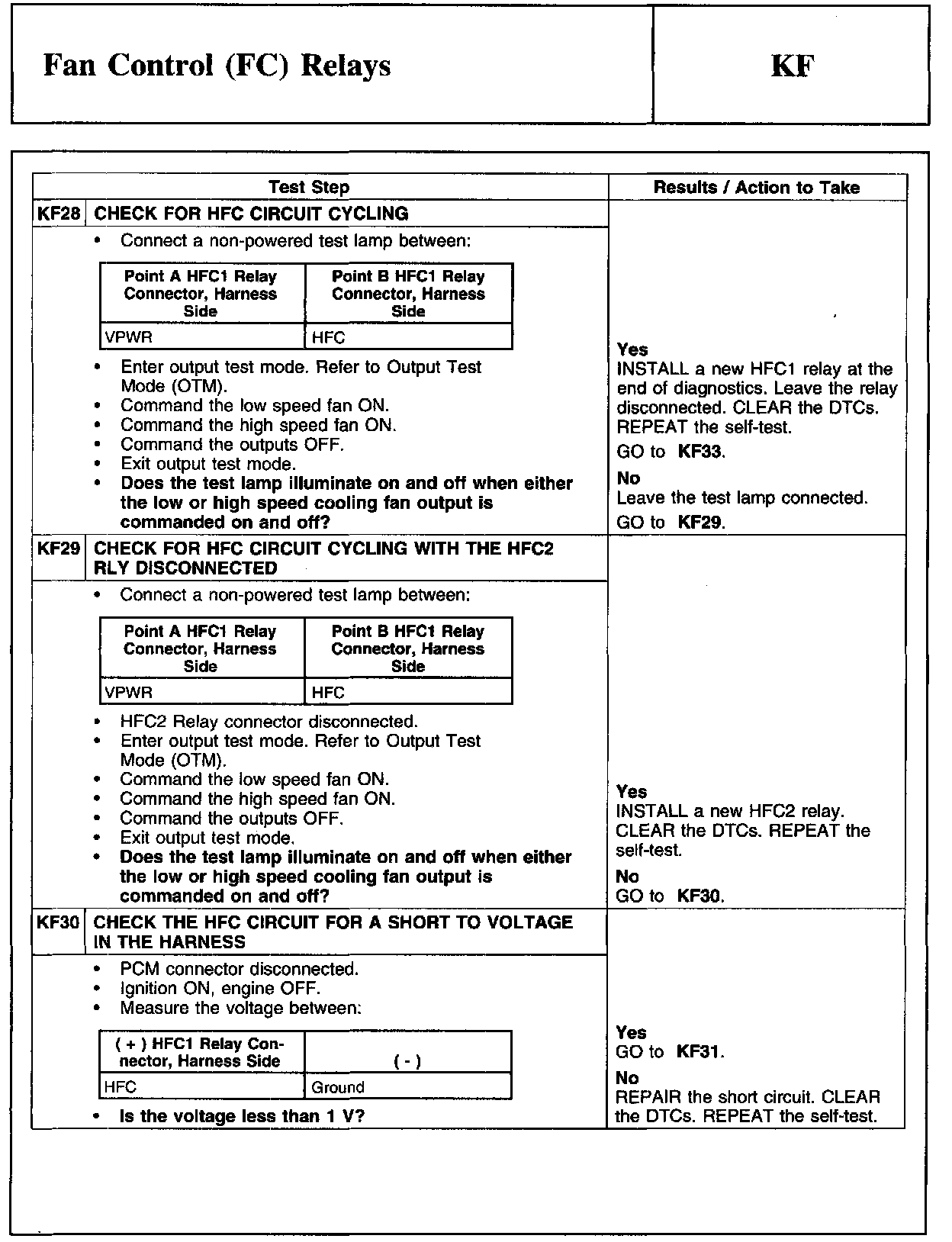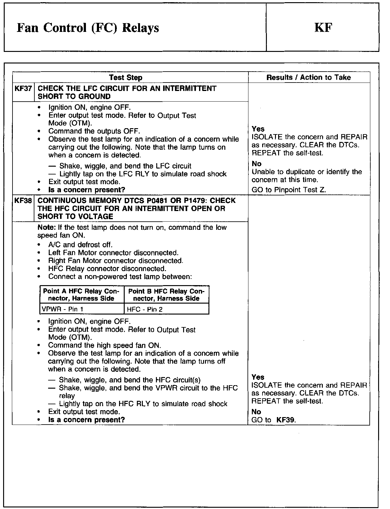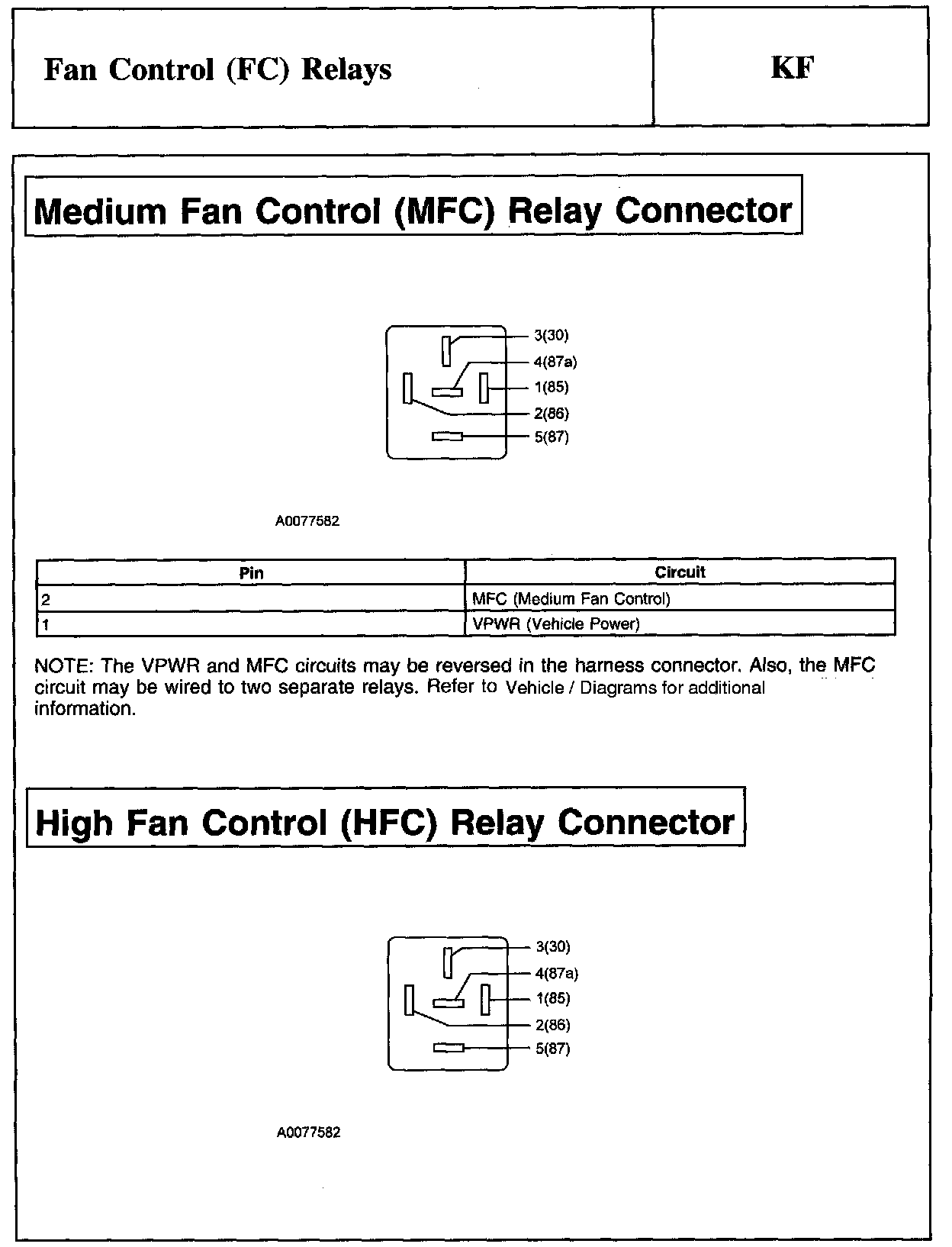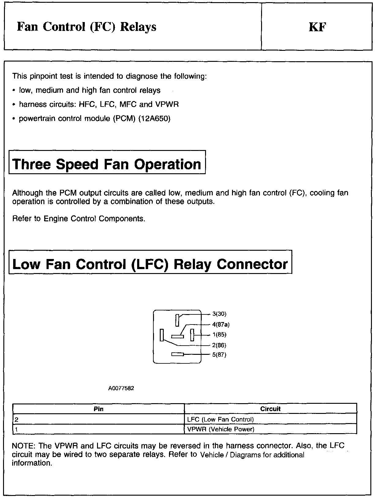 PINPOINT TEST KF: FAN CONTROL (FC) RELAYSThree Speed Fan Operation And Low Fan Control Relay Connector: