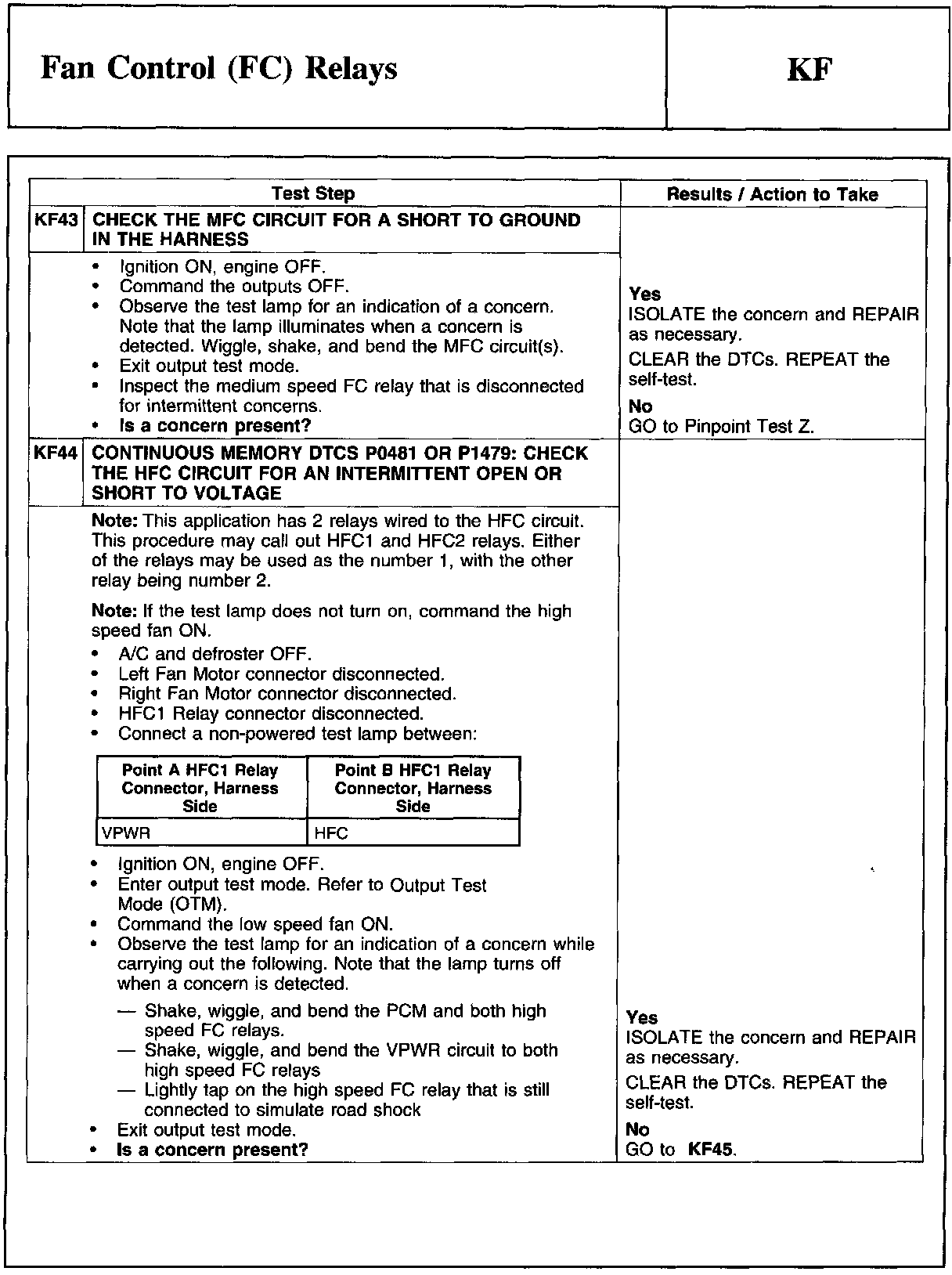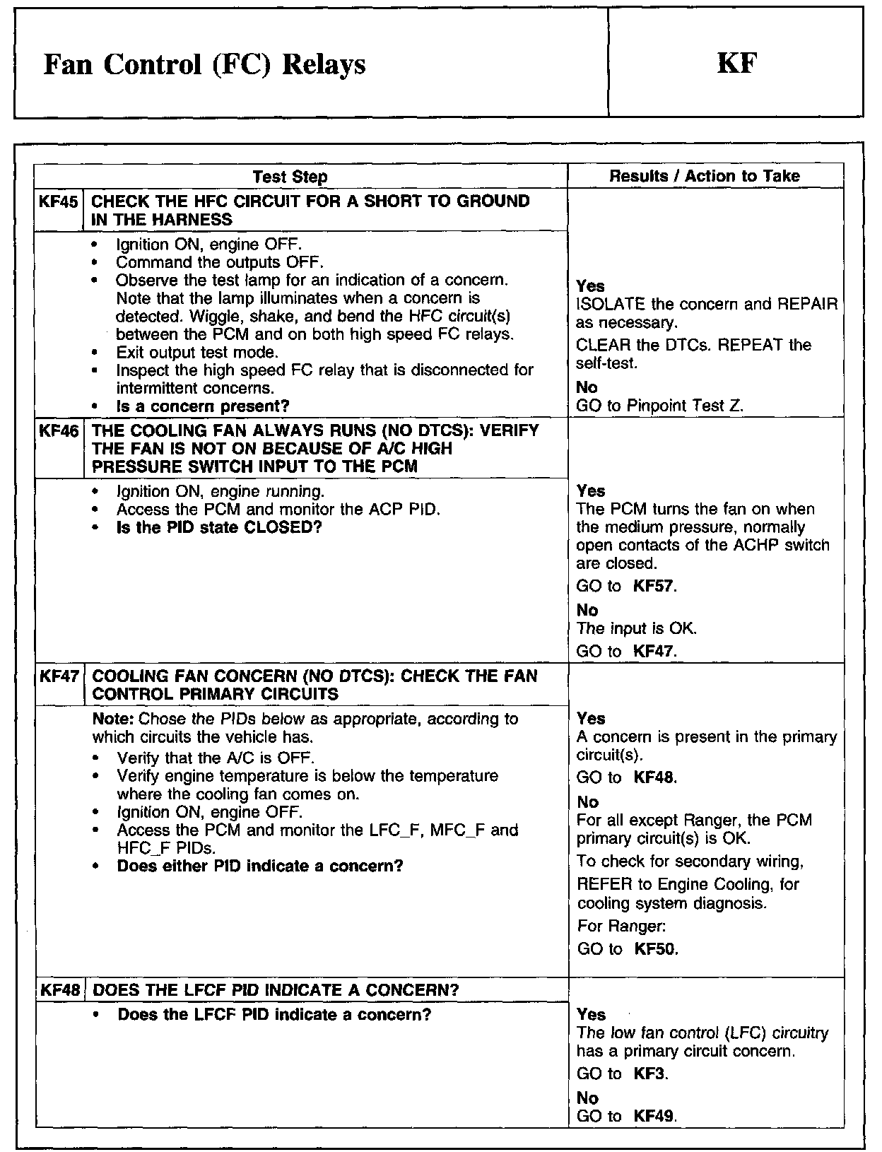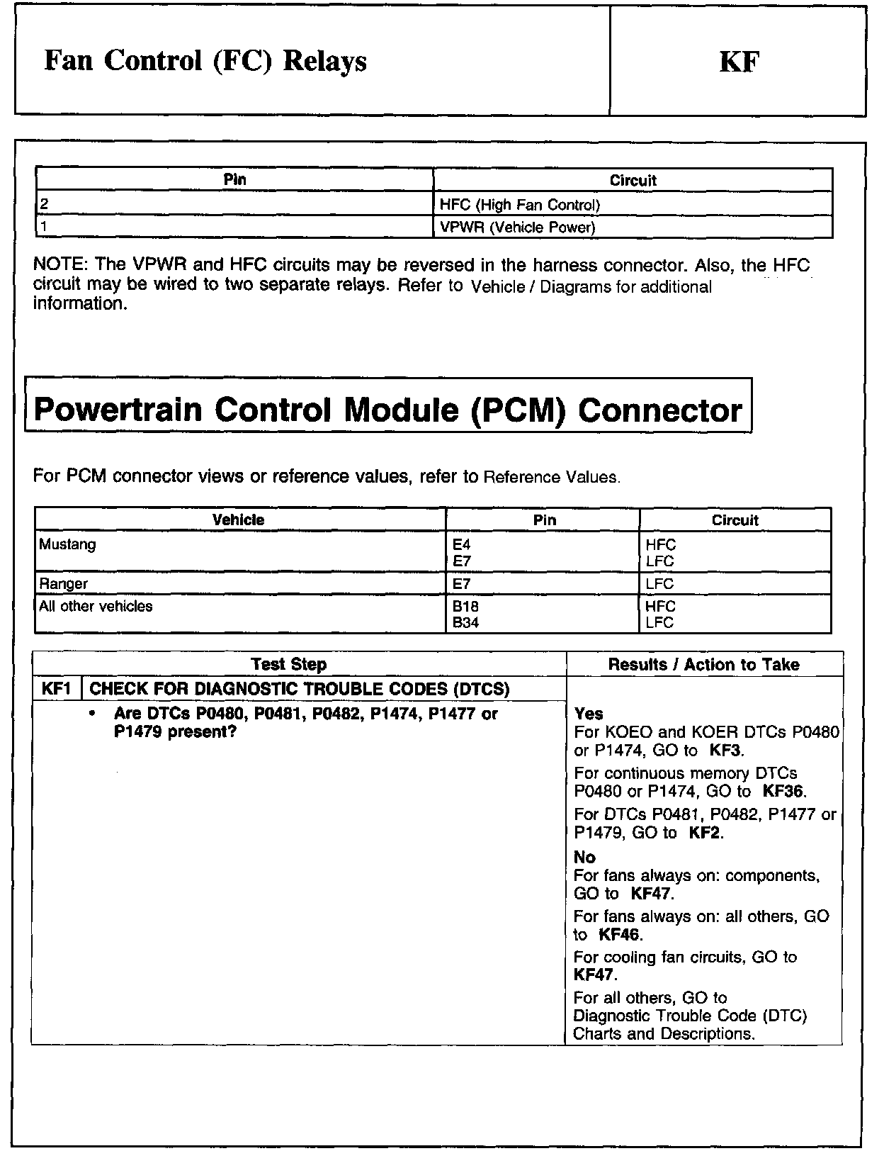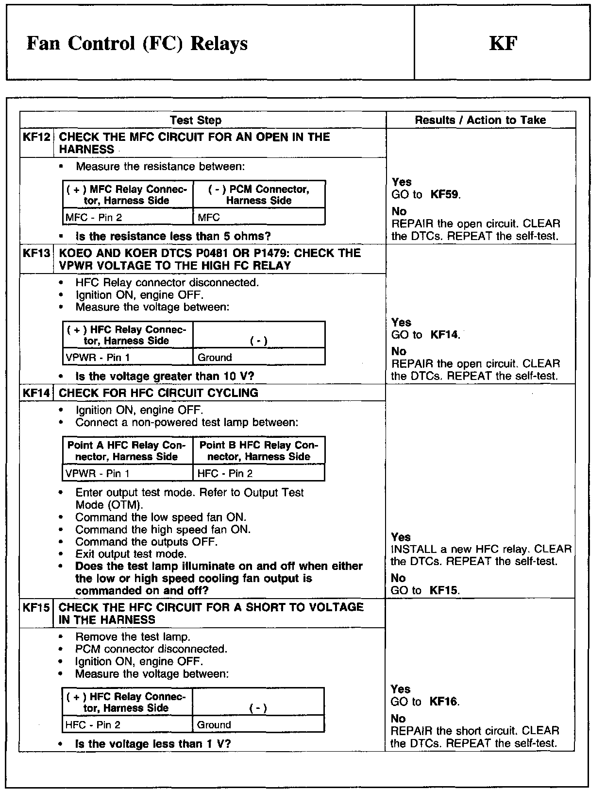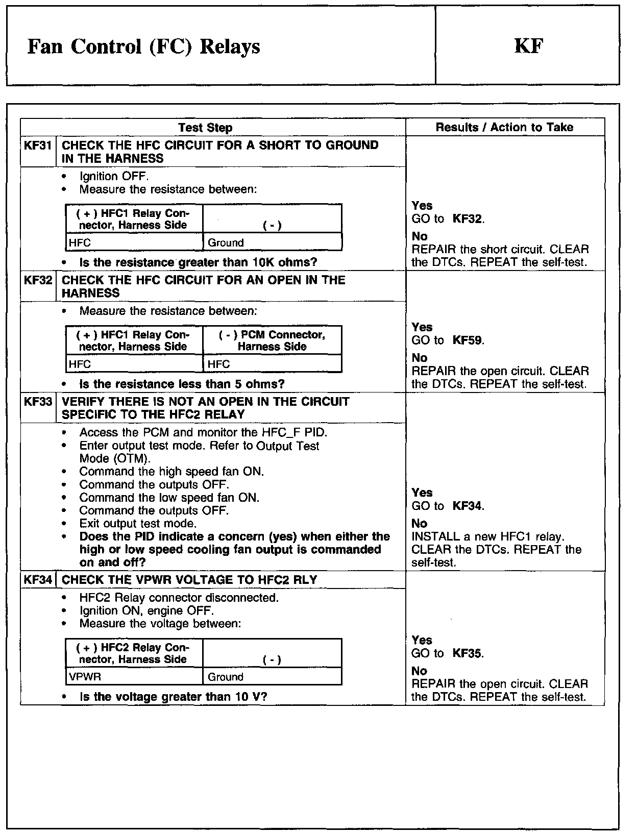 PINPOINT TEST KF: FAN CONTROL (FC) RELAYSThree Speed Fan Operation And Low Fan Control Relay Connector: