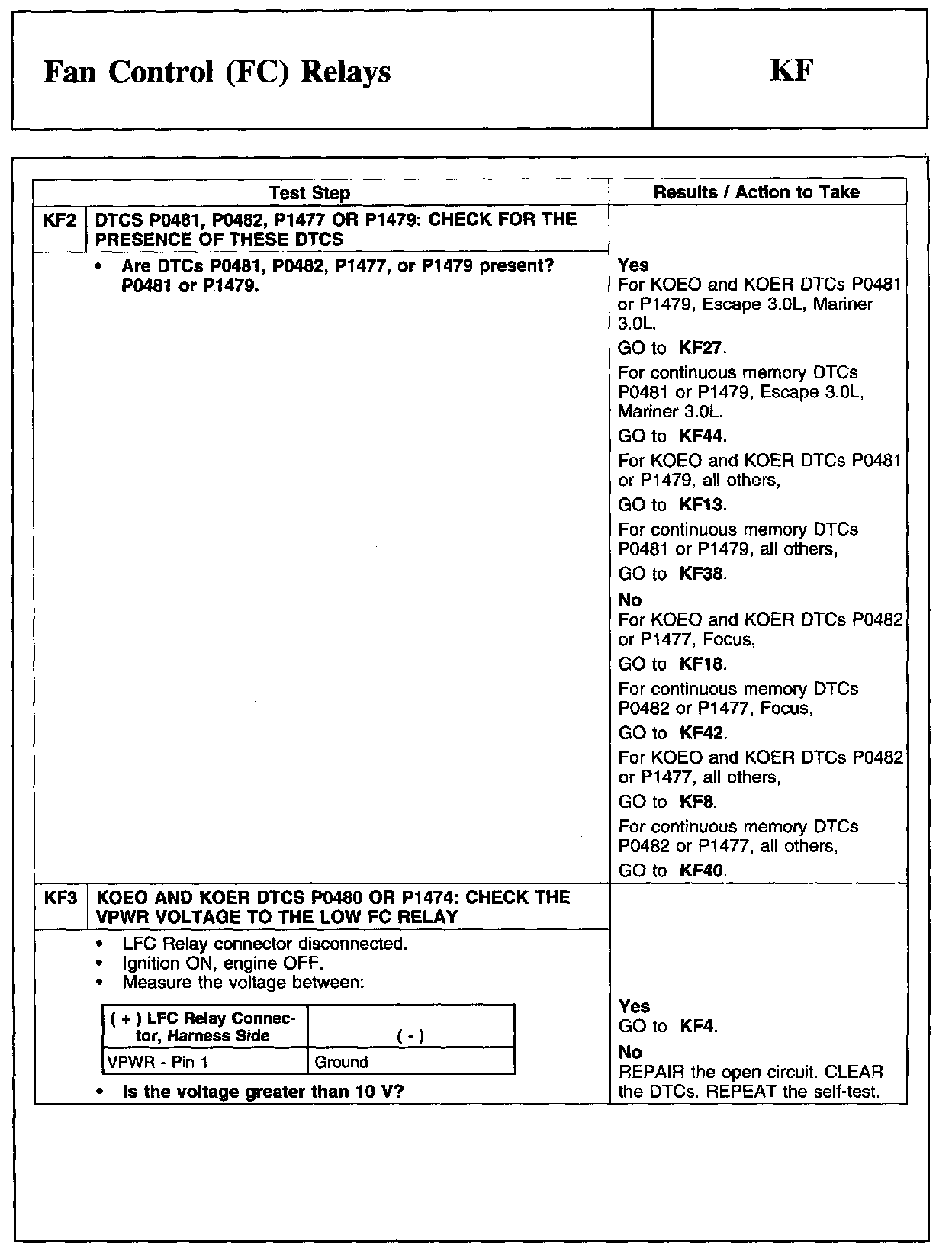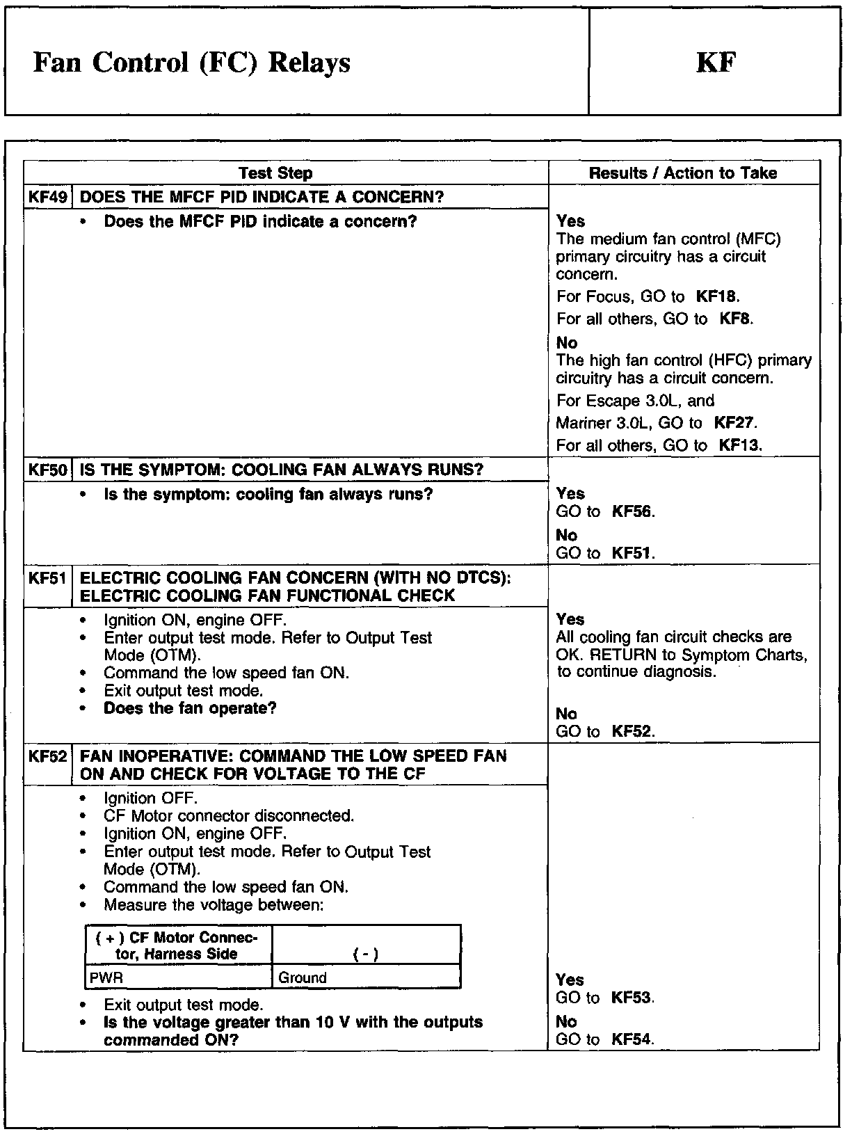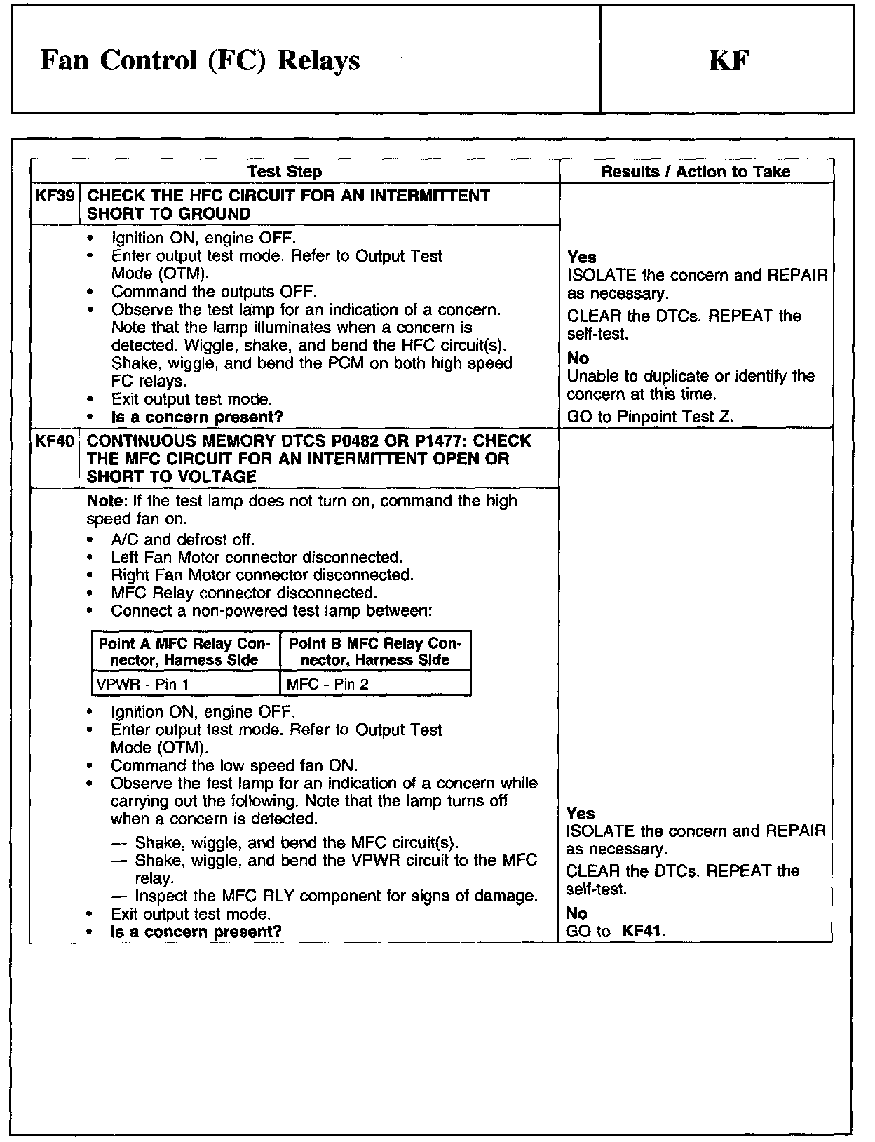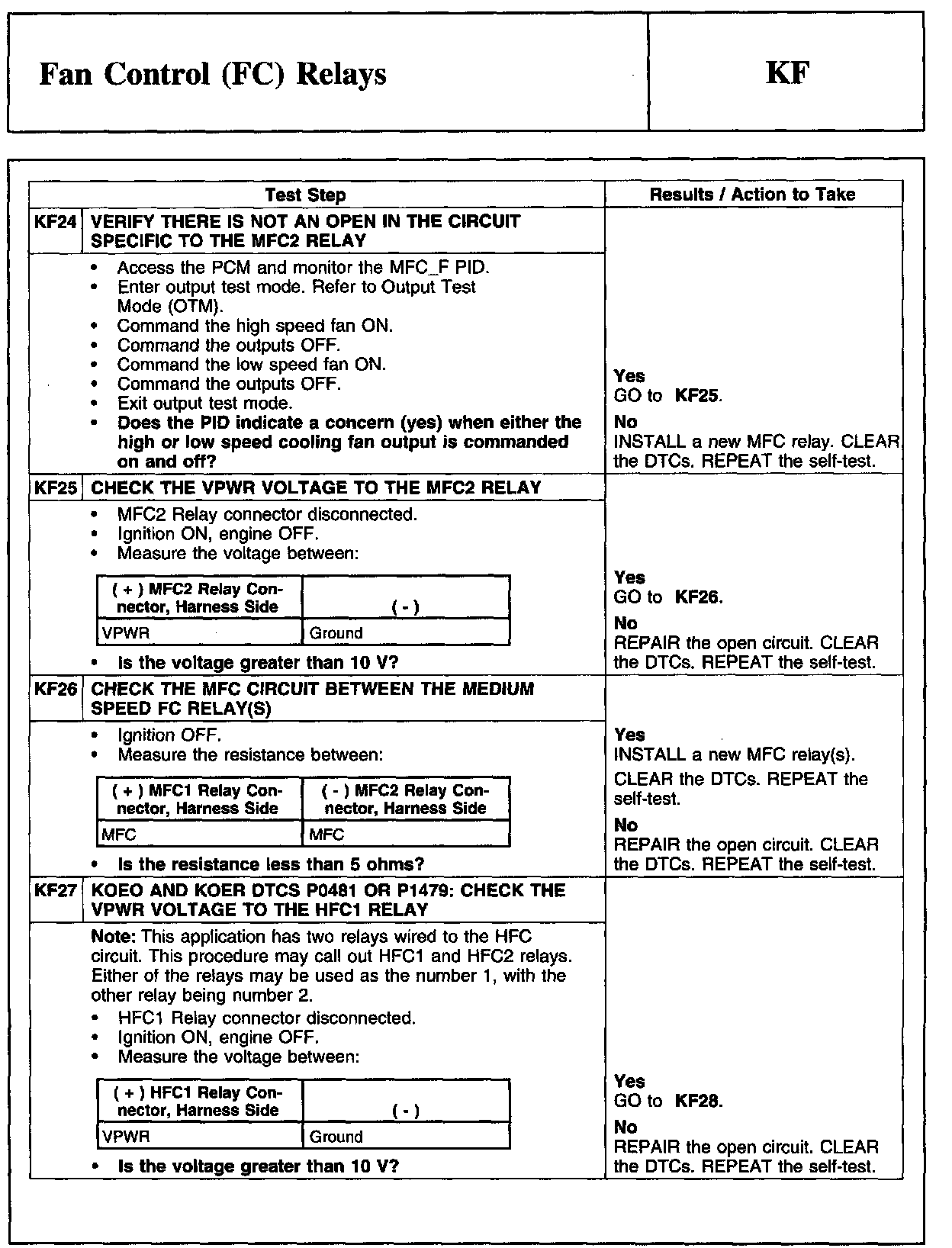 PINPOINT TEST KF: FAN CONTROL (FC) RELAYSThree Speed Fan Operation And Low Fan Control Relay Connector: