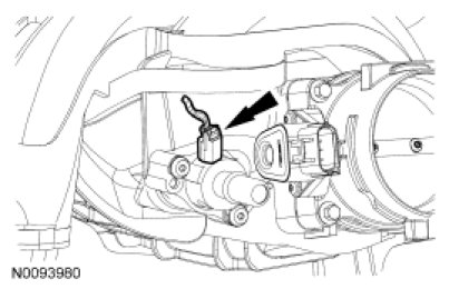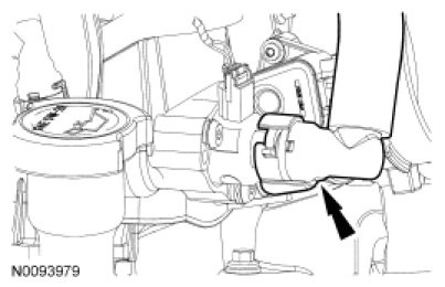 1. Using a suitable heat gun, apply heat to the top of the Electronic Throttle Body (ETB) until the top TP sensor bolt ear reaches approximately 55°C (130°F), this should take no more than 3 minutes using a 1100-watt heat gun. The heat gun should be about an 25.4 mm (1 in) away from the ETB.
