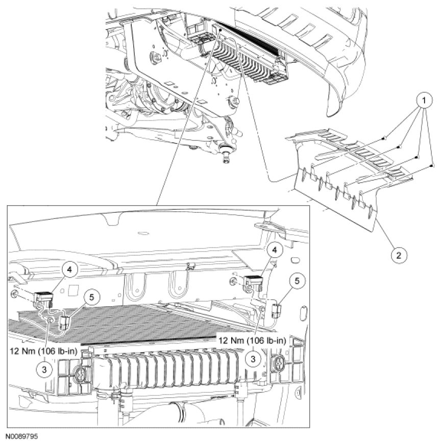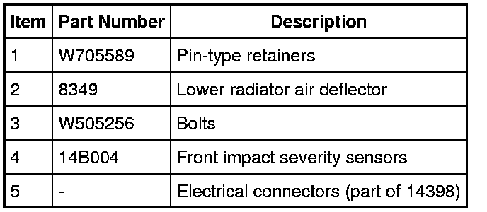 NOTE: Make sure the radiator support and front impact severity sensor mating surfaces are clean and free of foreign material.