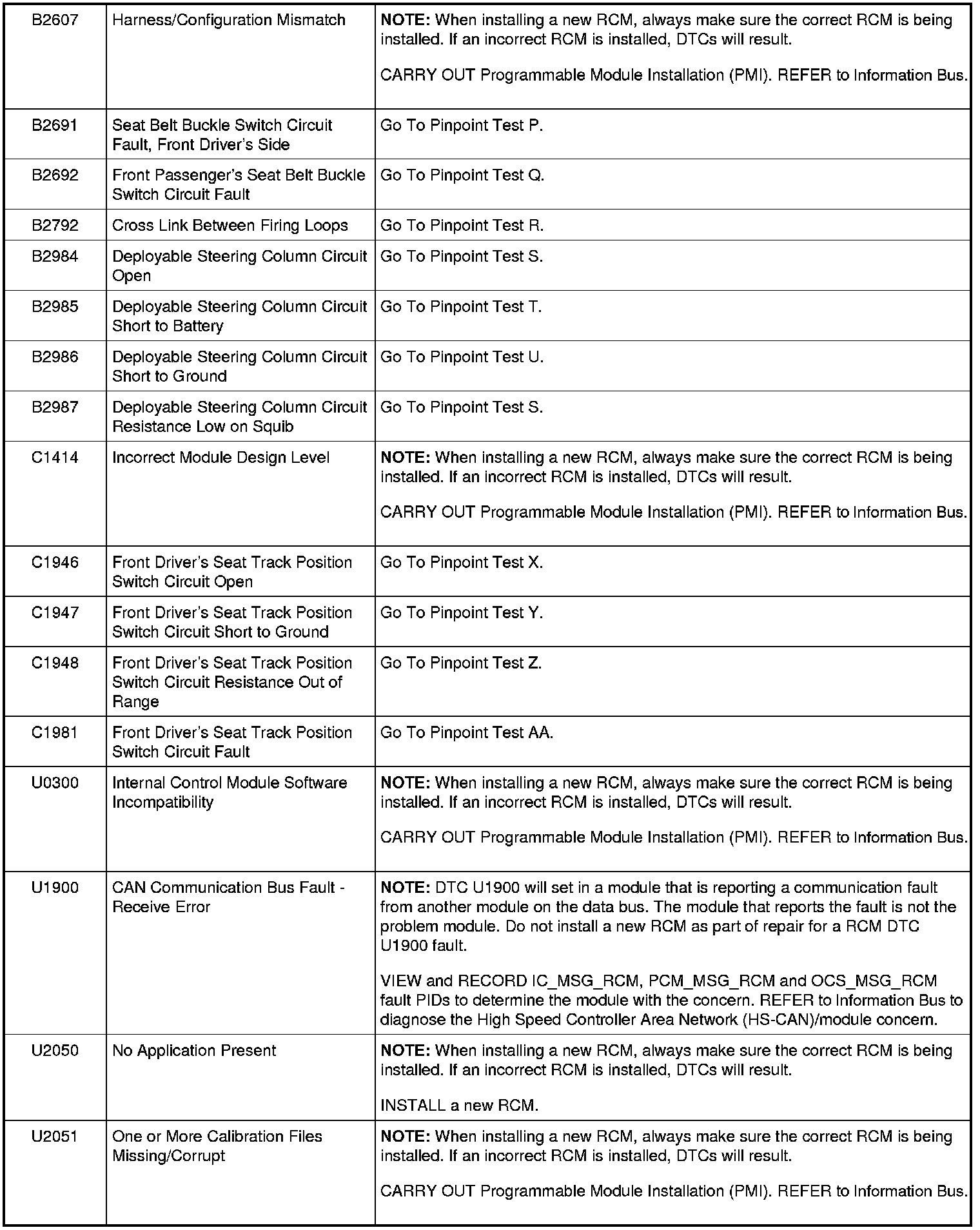 B2607-B2987 / C1414-C1981 / U0300-U2051:
