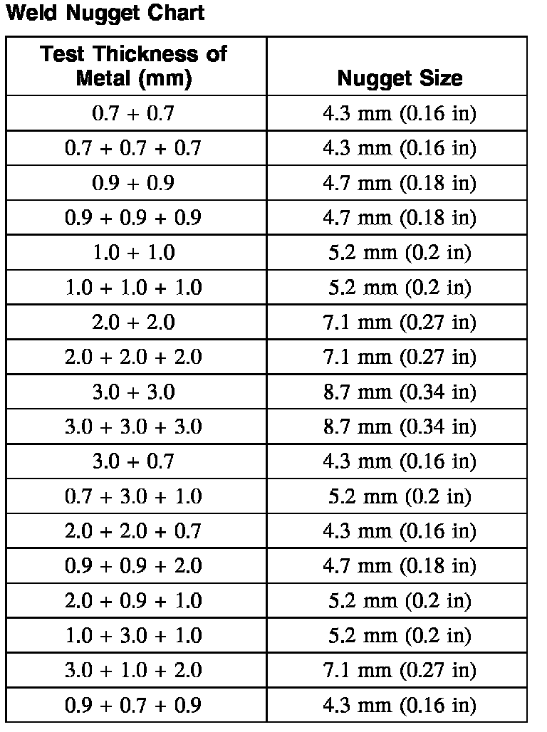 Weld Nugget Chart: