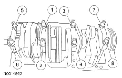 Tighten the 8 bolts in the sequence shown in 2 stages.