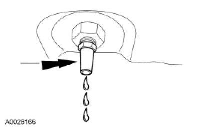 16. Allow the transmission fluid to drain. Make sure that the TFT is between 27-49°C (80-120°F). When the transmission fluid comes out as a thin stream or drip, the transmission fluid is at the correct level.