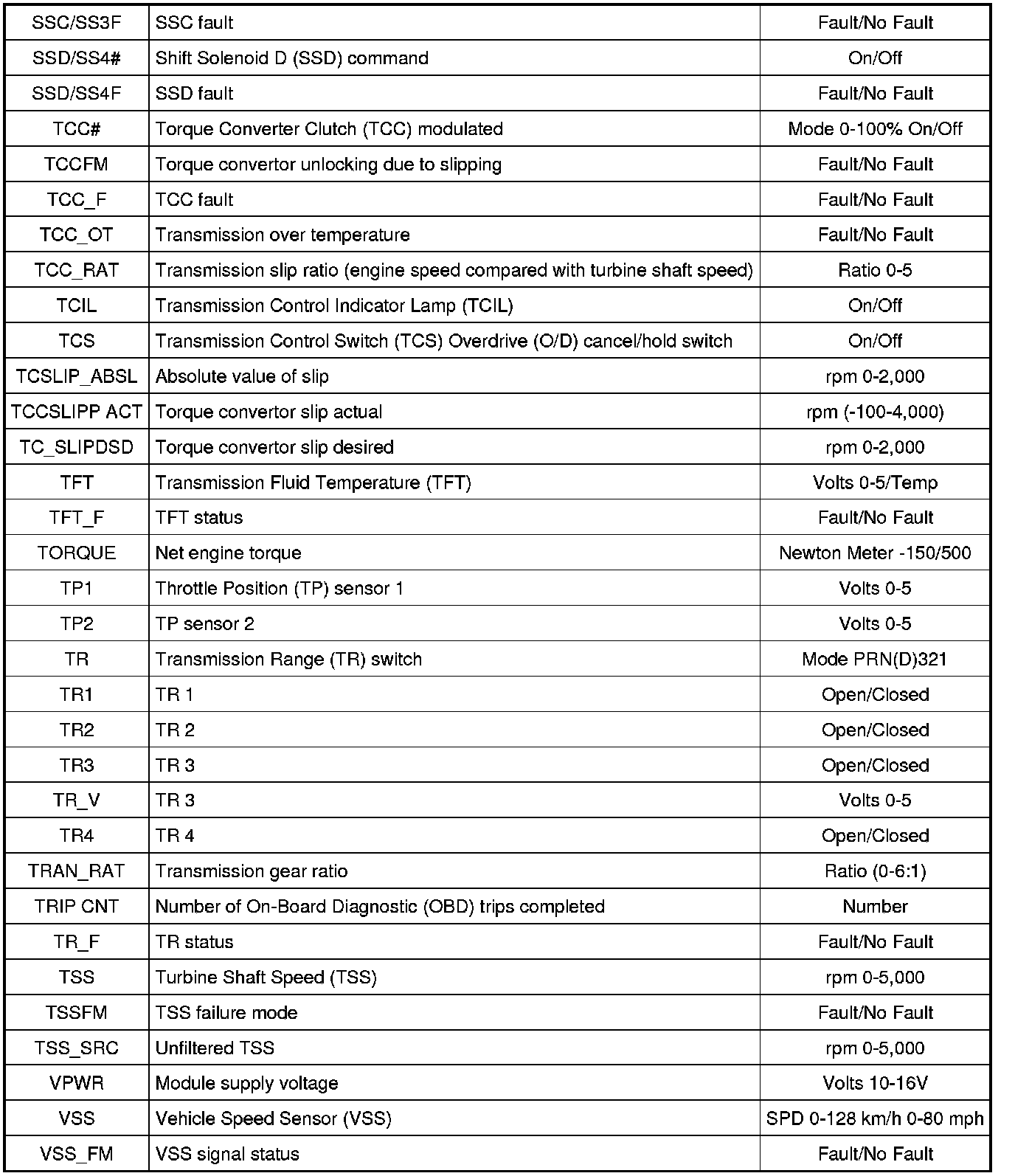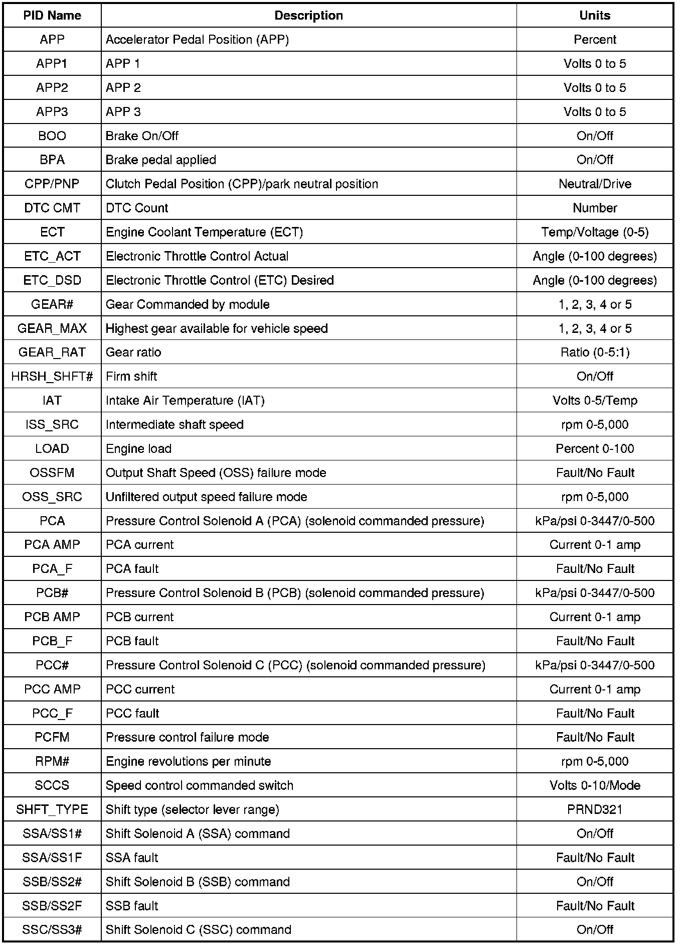 To confirm that the output state control value was sent by the scan tool and the PCM has accepted the output state control substitution, a corresponding PID for each output state control parameter must be monitored. Additional PIDs should be monitored to help the technician adequately diagnose the transmission.