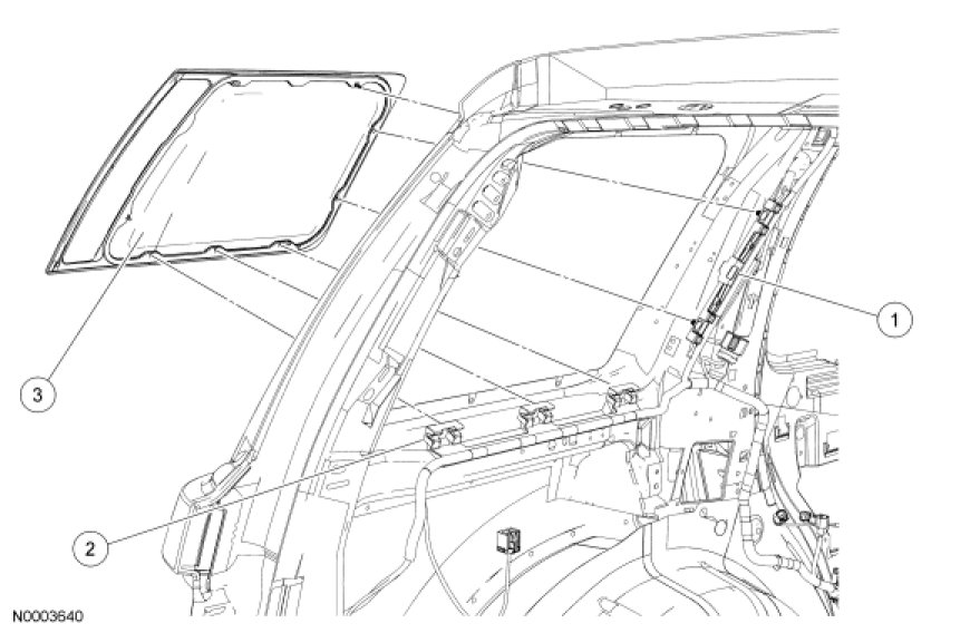 NOTE: Locating tabs need to be cut through in order to remove the rear quarter window glass. The new rear quarter window glass will be equipped with new locating tabs.