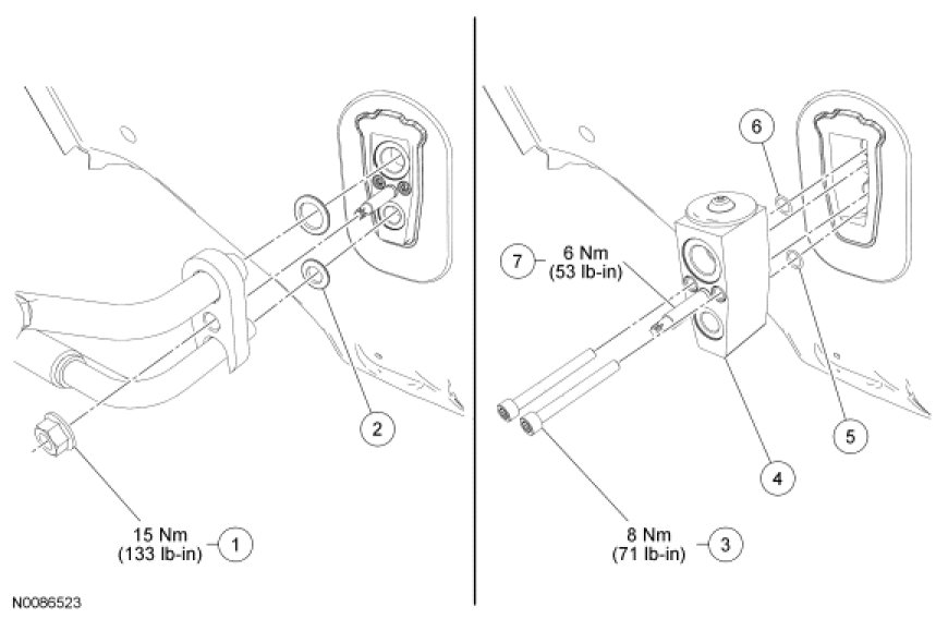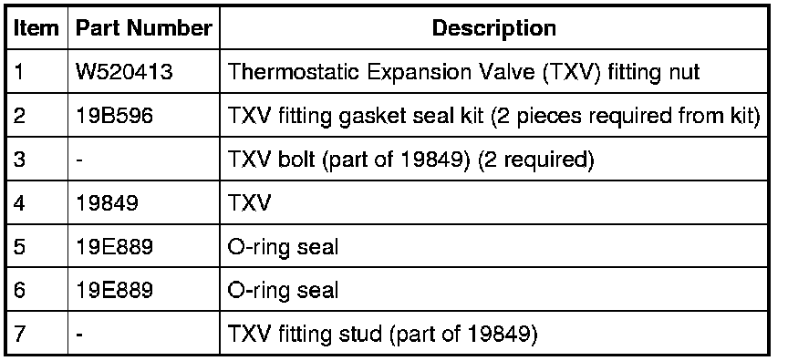 - If the TXV stud has become loose during removal, or has been removed for any reason, tighten the TXV stud to 6 Nm (53 lb-in) before the TXV fitting nut is reinstalled.