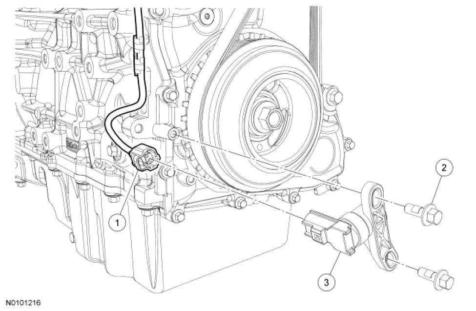 - Tighten the 2 CKP bolts to 7 Nm (62 lb-in).