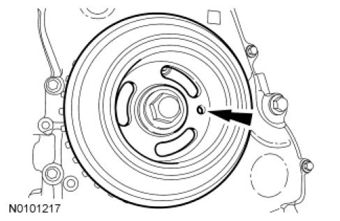 3. Turn the crankshaft clockwise until the hole in the crankshaft pulley is in the 3 o'clock position.