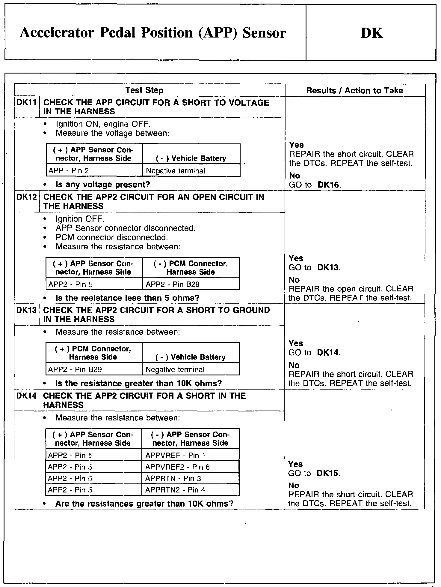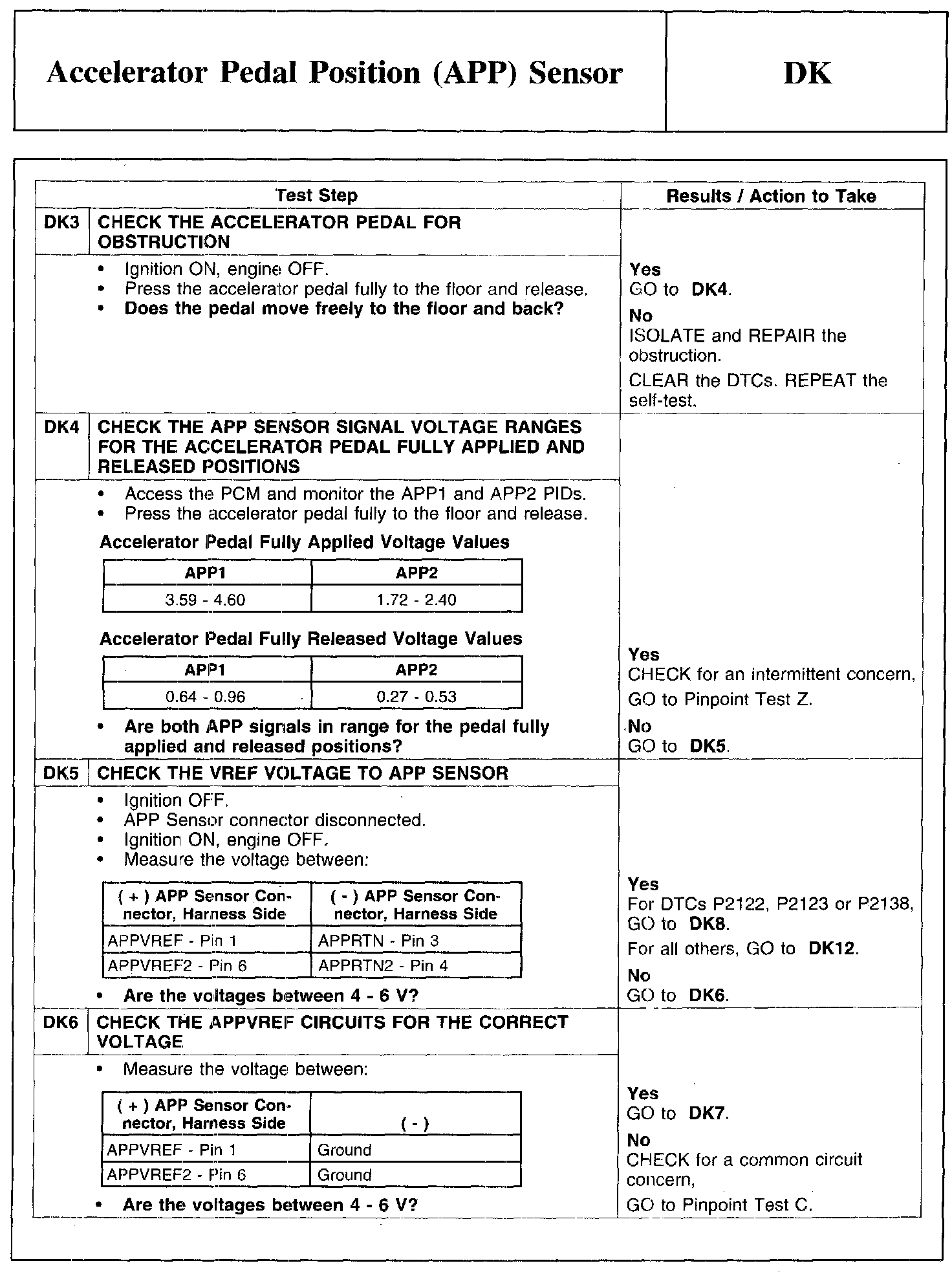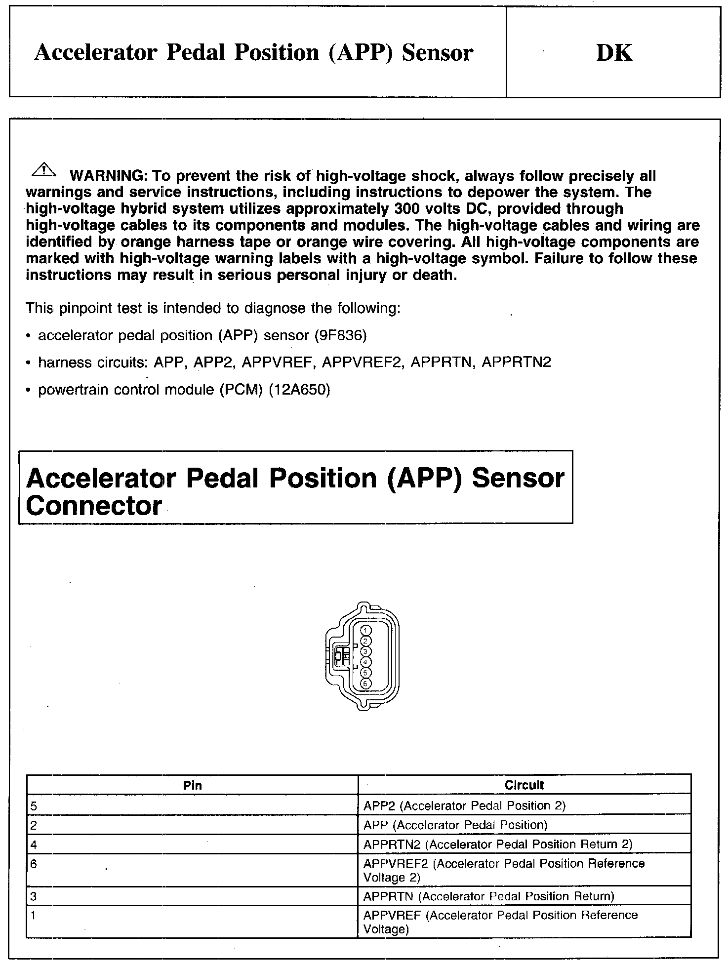 PINPOINT TEST DK: ACCELERATOR PEDAL POSITION (APP) SENSOR