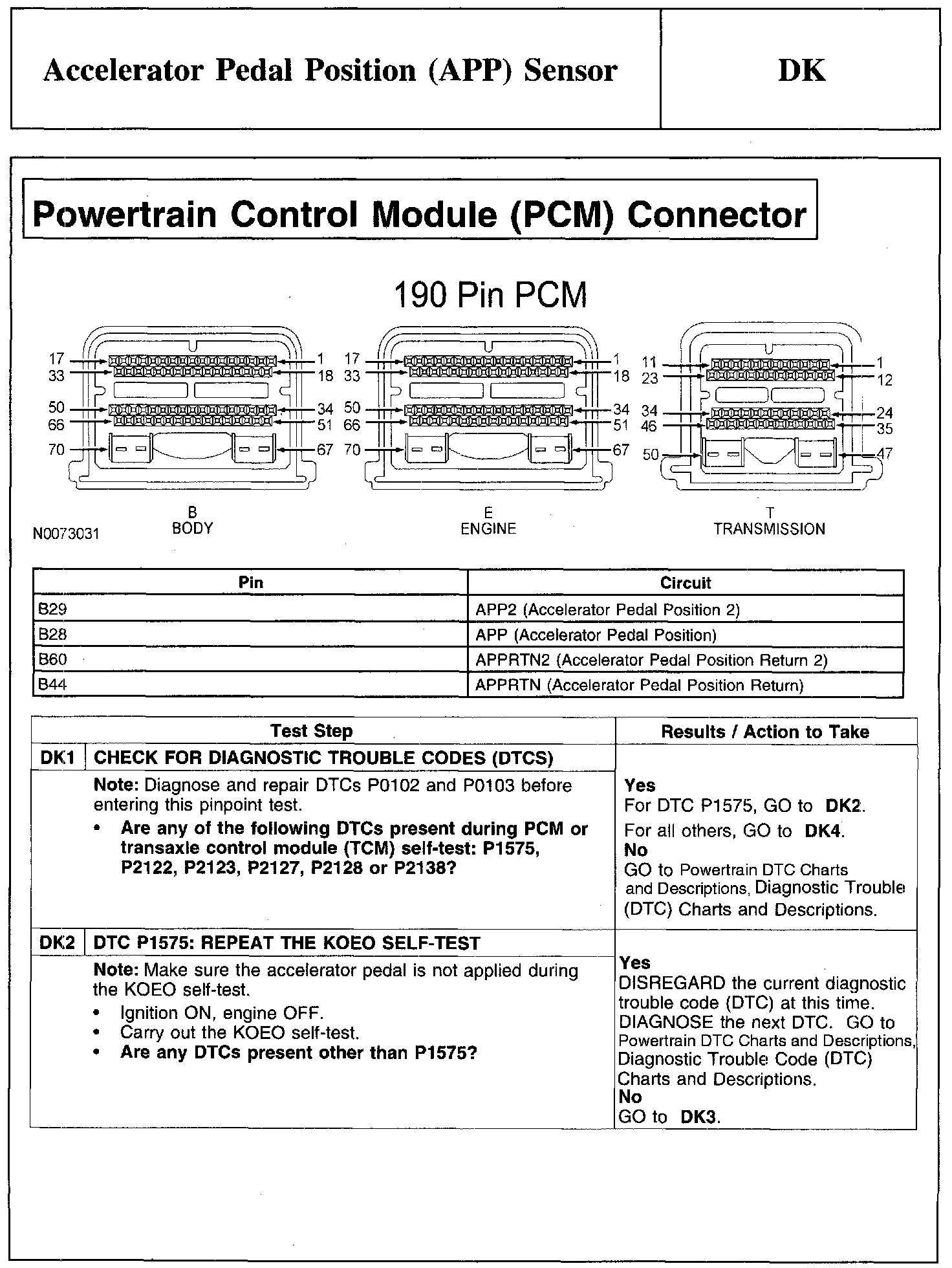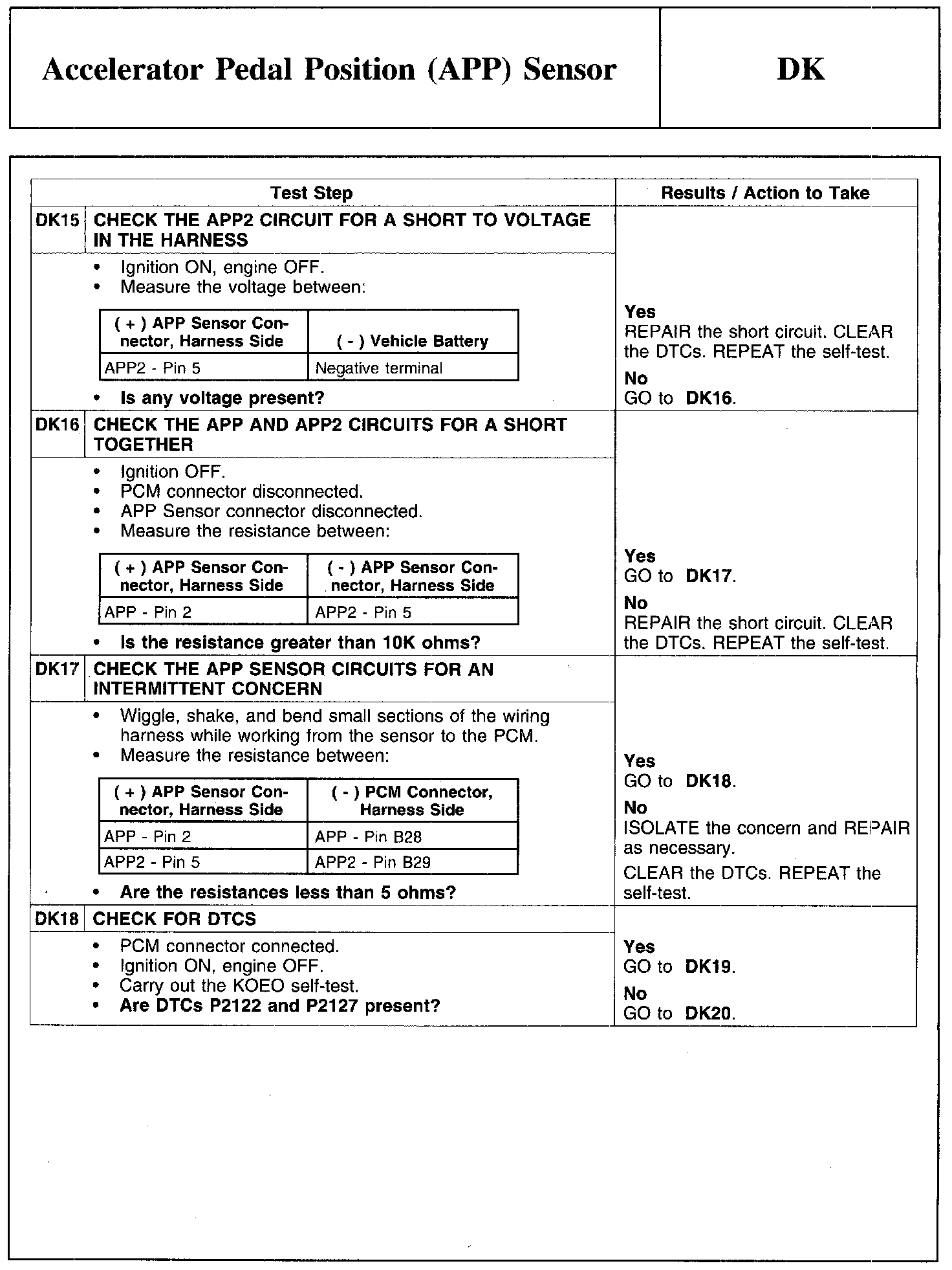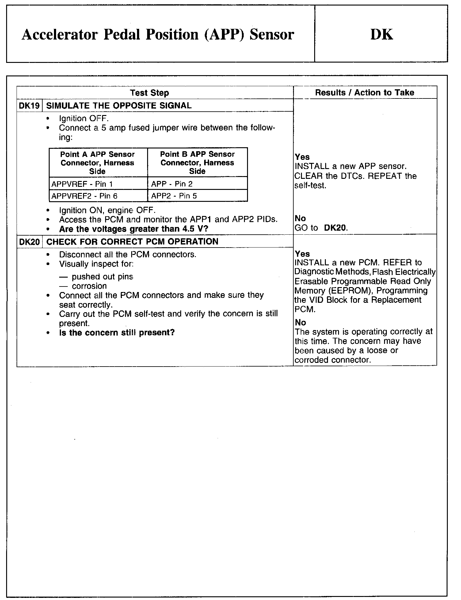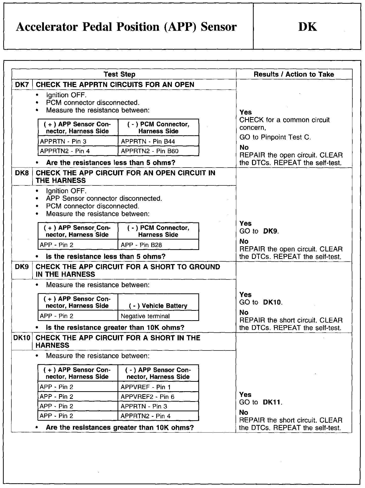 PINPOINT TEST DK: ACCELERATOR PEDAL POSITION (APP) SENSOR