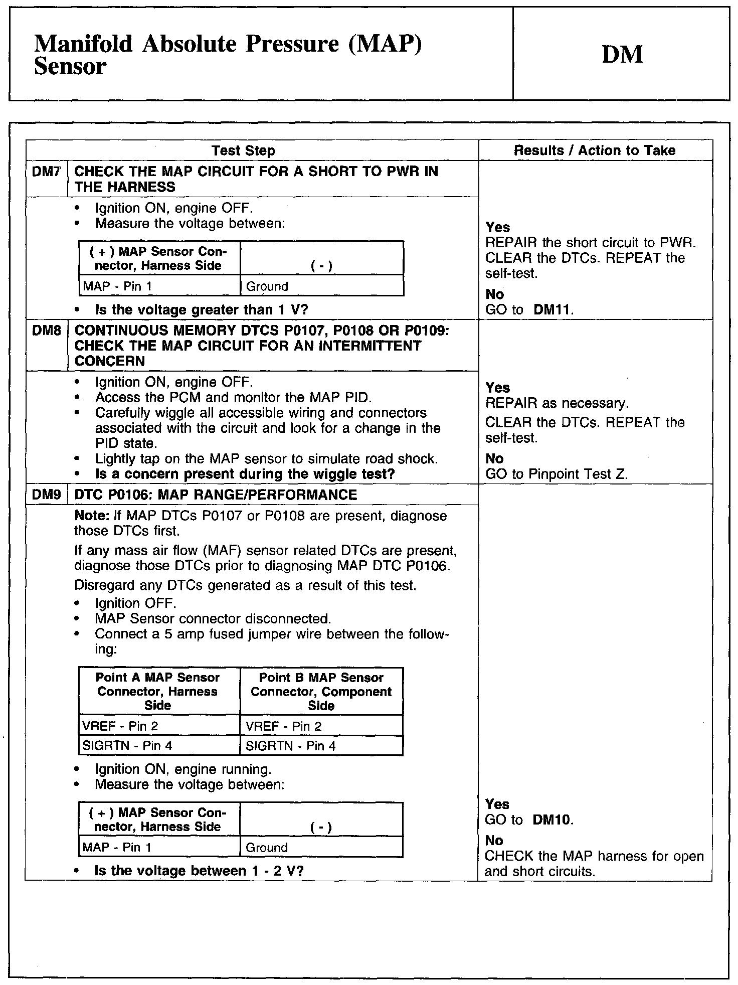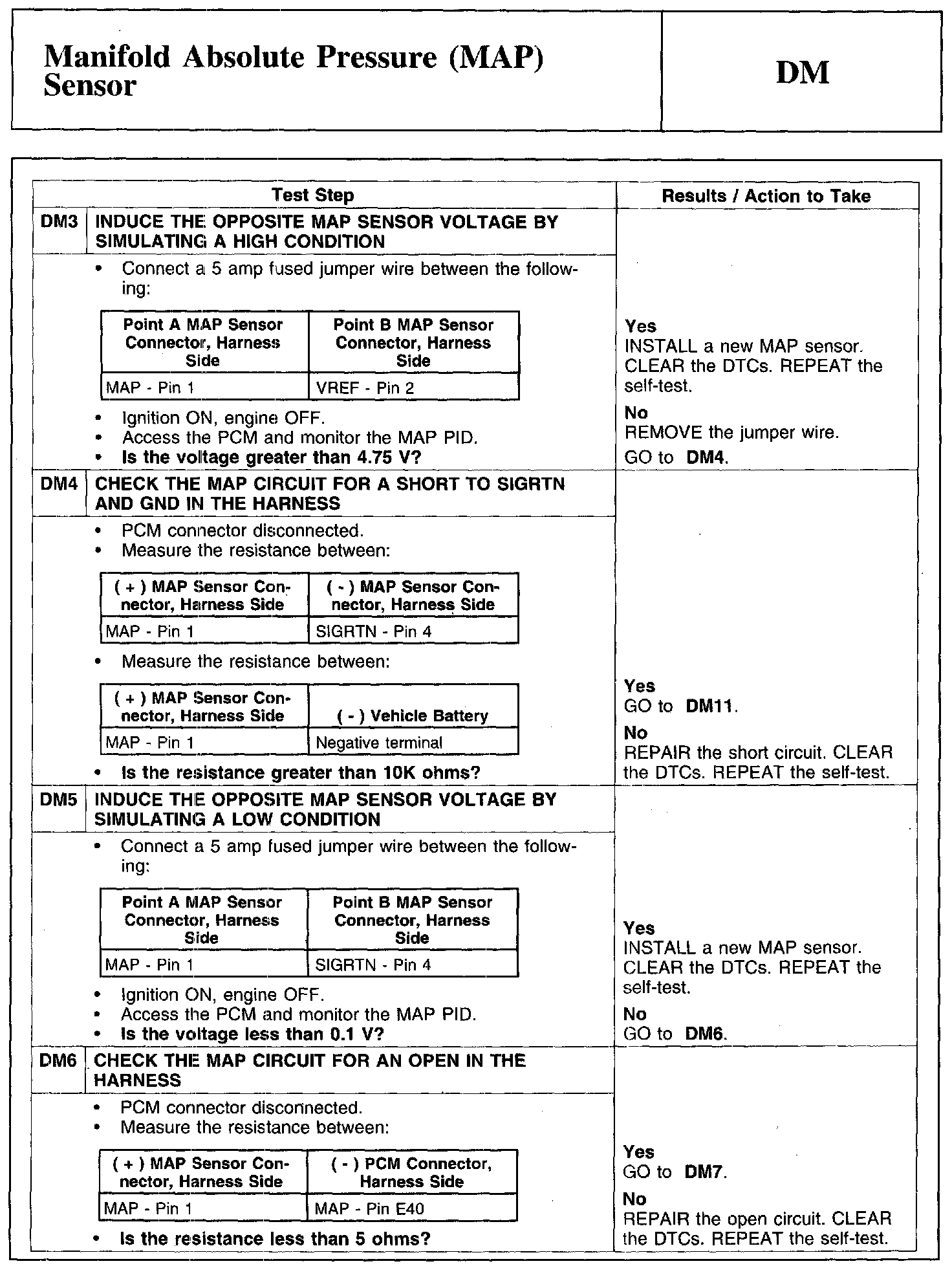 Test DM: Manifold Absolute Pressure (MAP) Sensor