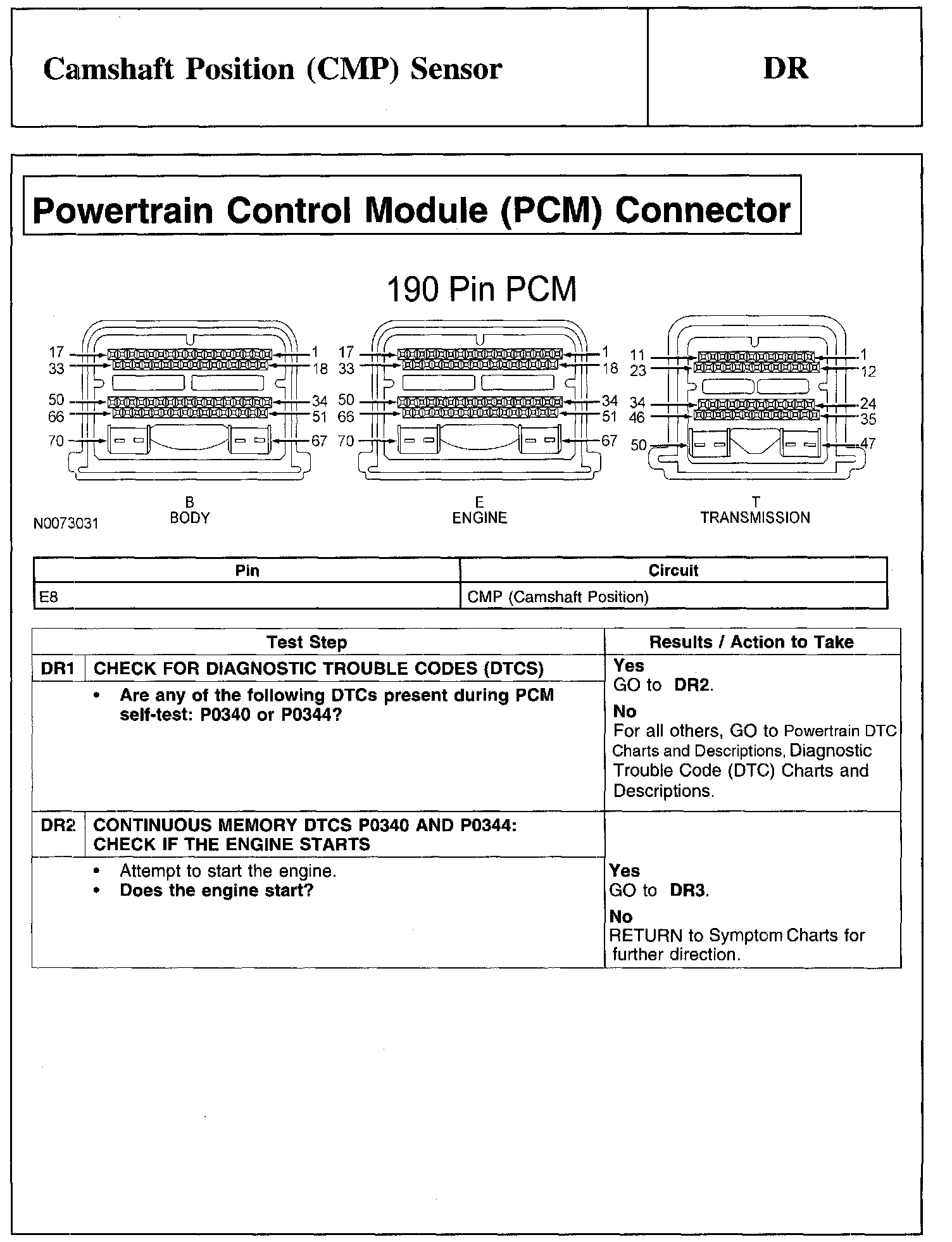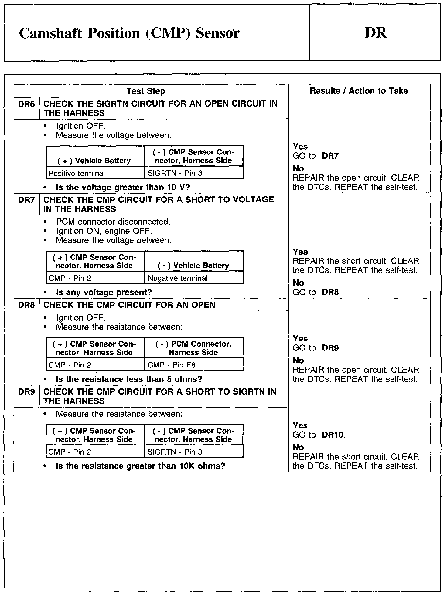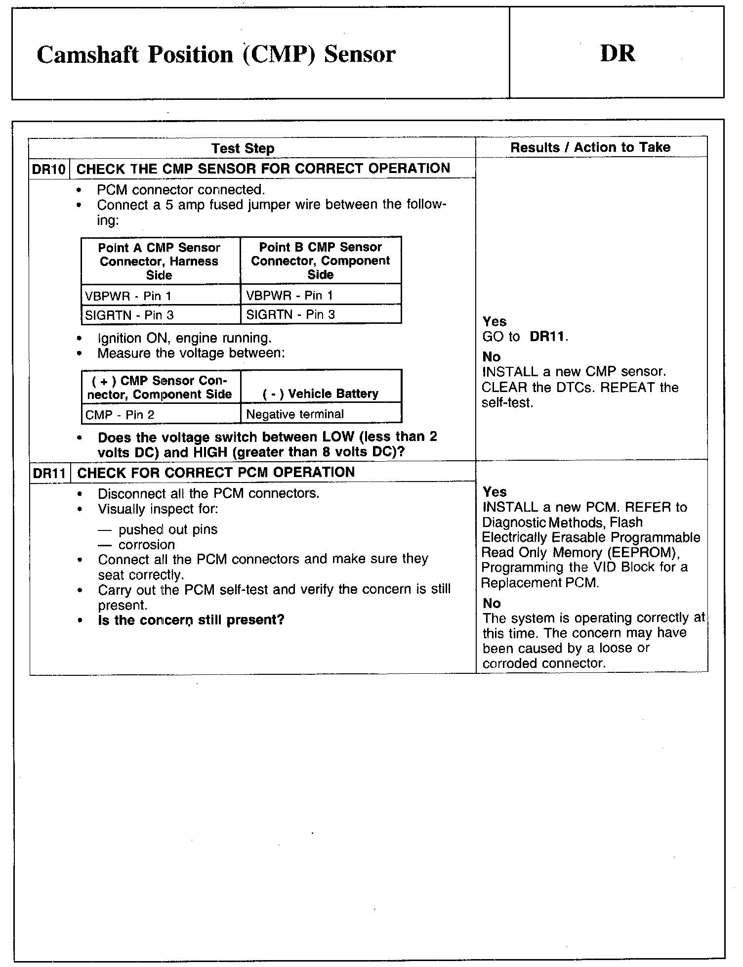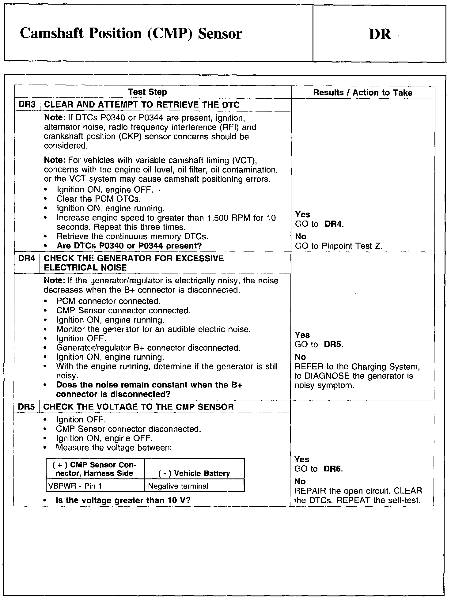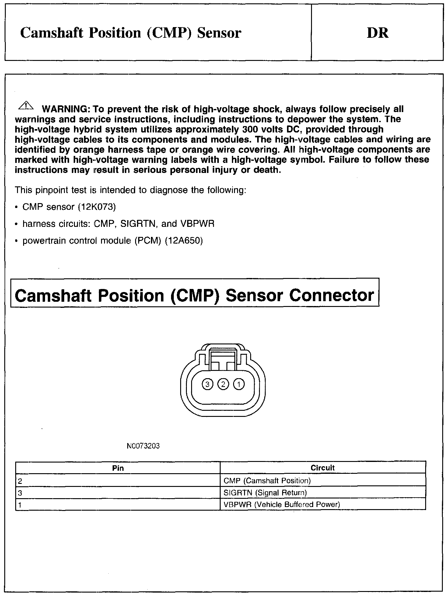 PINPOINT TEST DR: CAMSHAFT POSITION (CMP) SENSOR