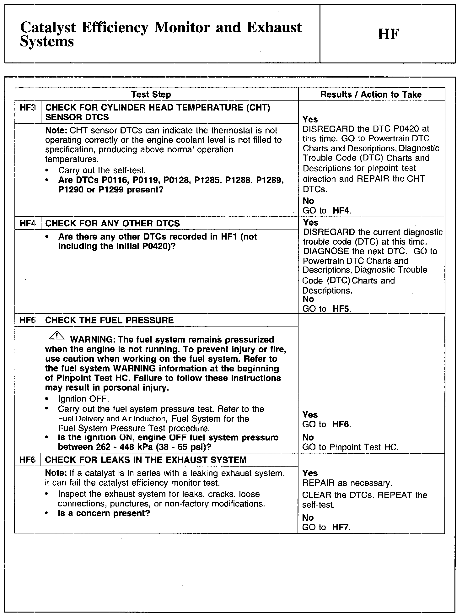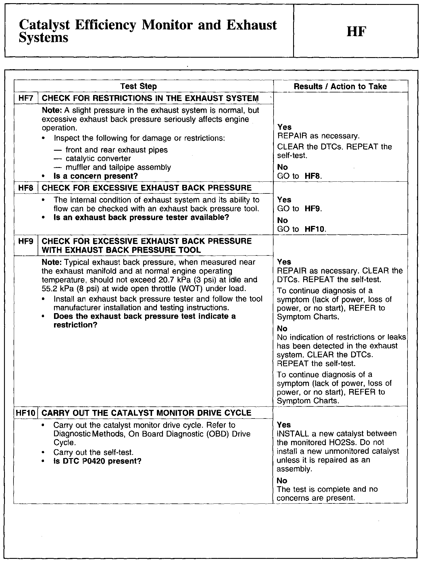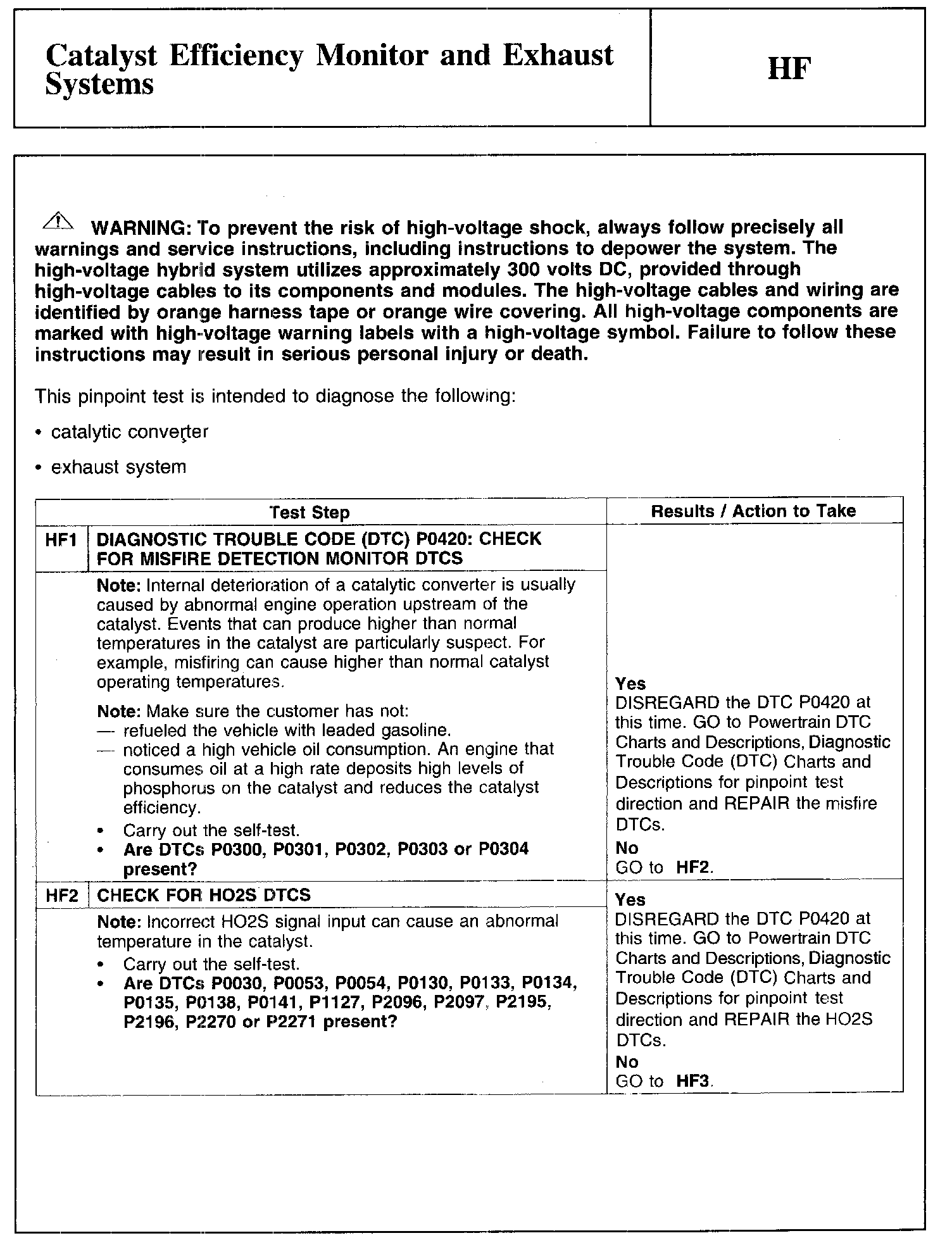 Test HF: Catalyst Efficiency Monitor and Exhaust Systems