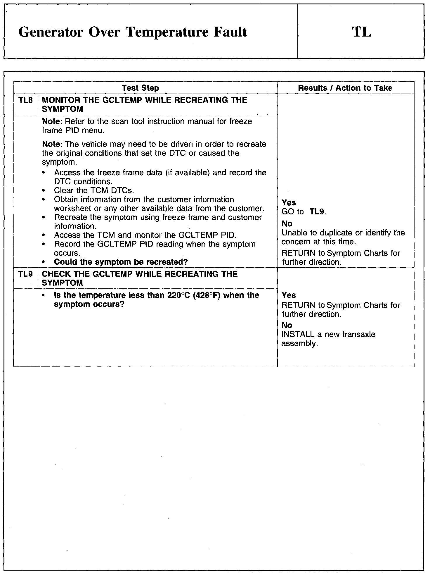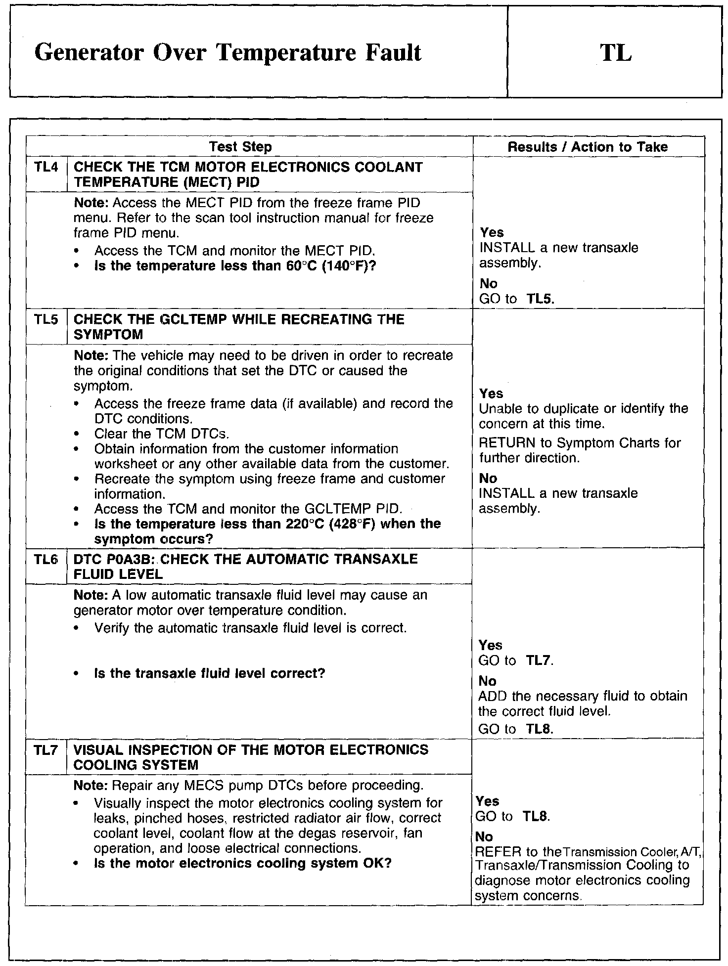 PINPOINT TEST TL: GENERATOR OVER TEMPERATURE FAULT