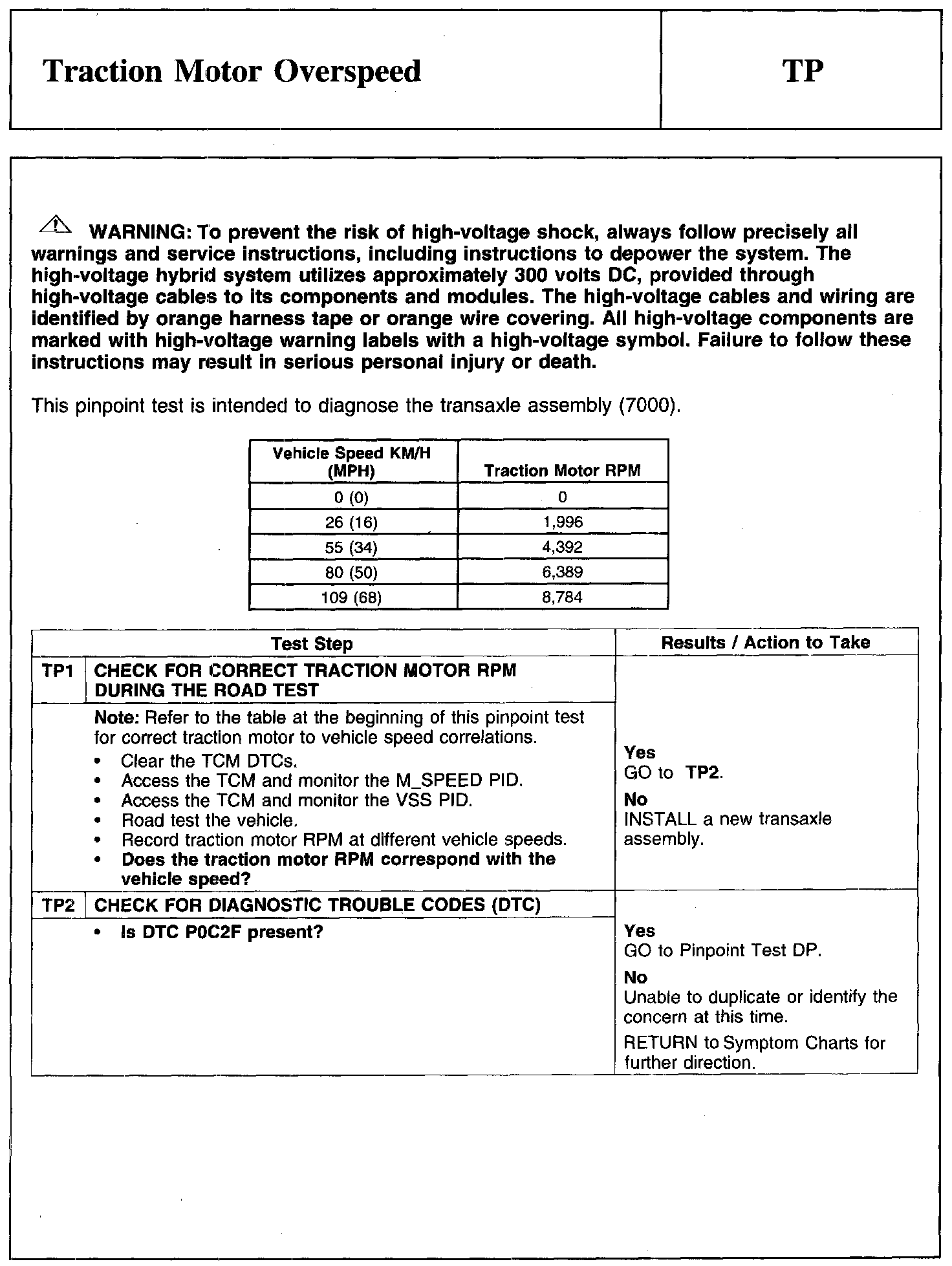 PINPOINT TEST TP: TRACTION MOTOR OVERSPEED