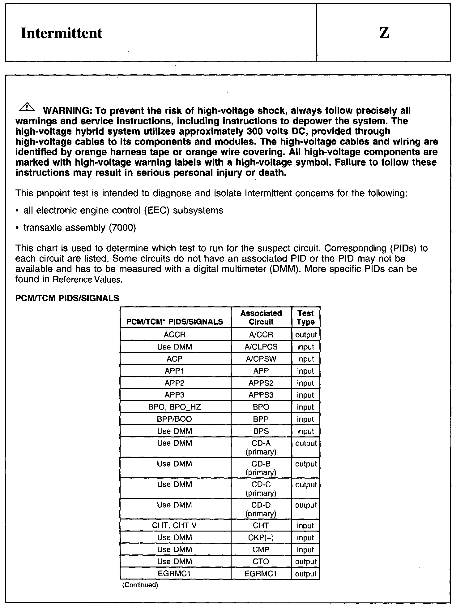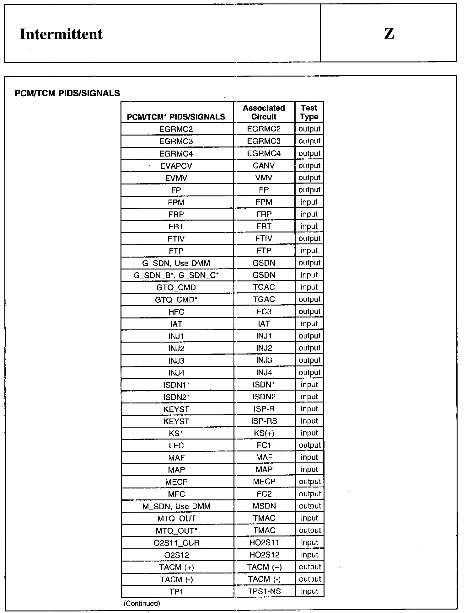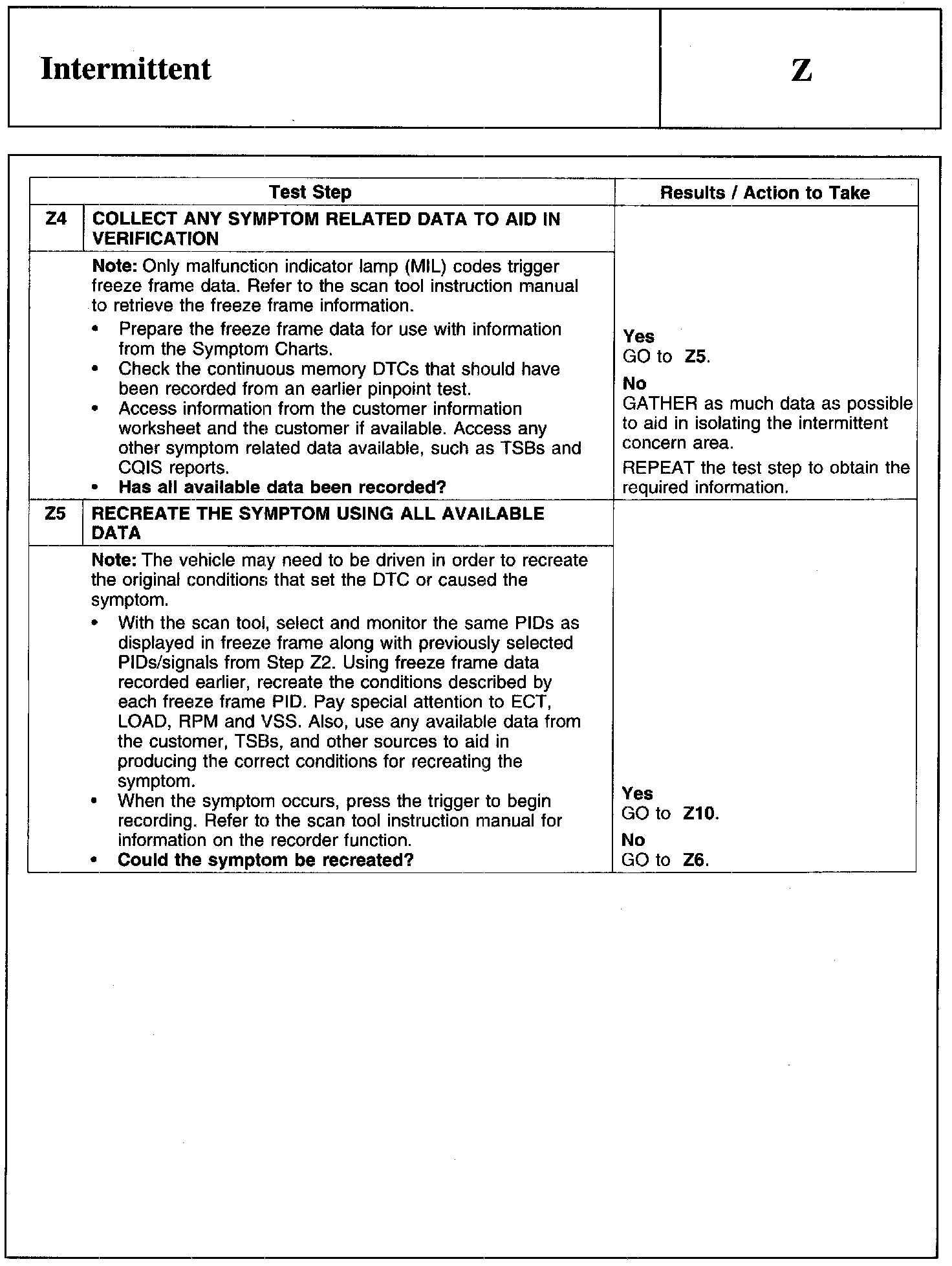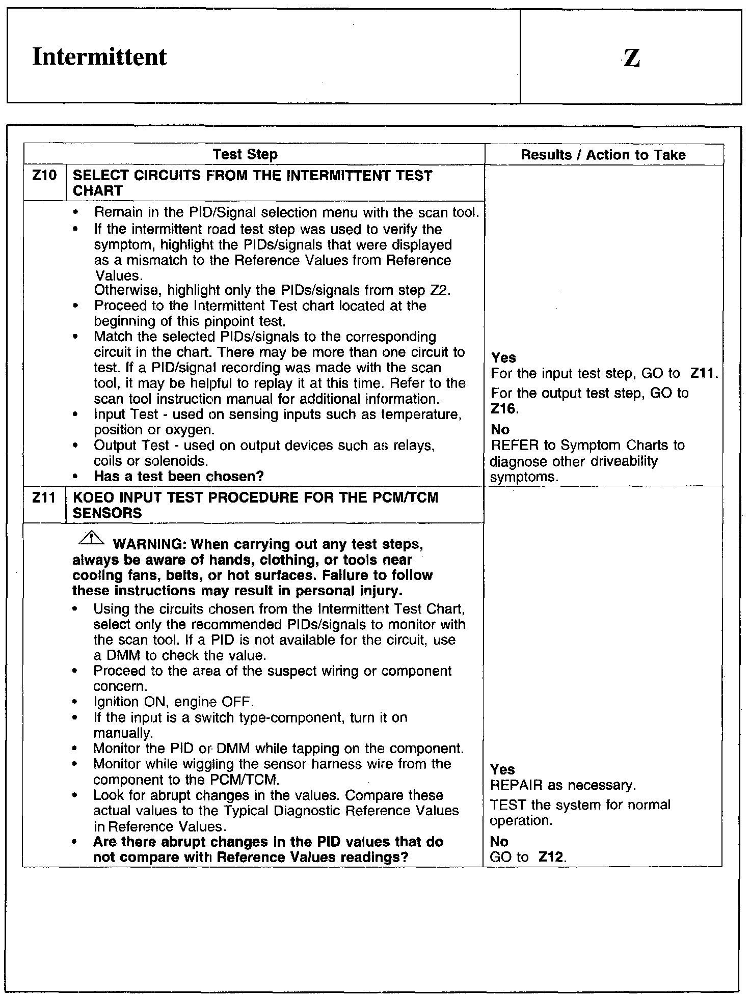 PINPOINT TEST Z: INTERMITTENT