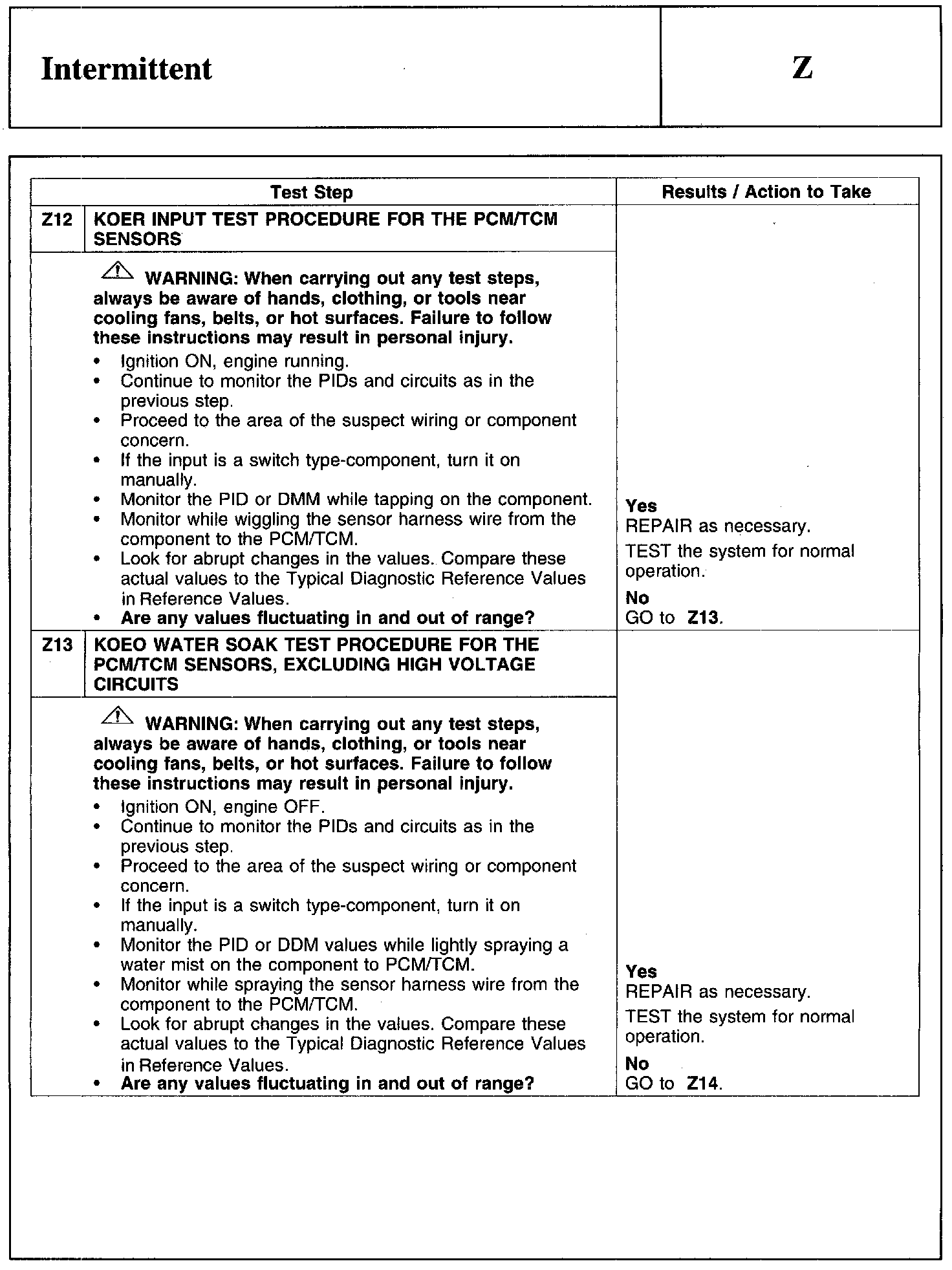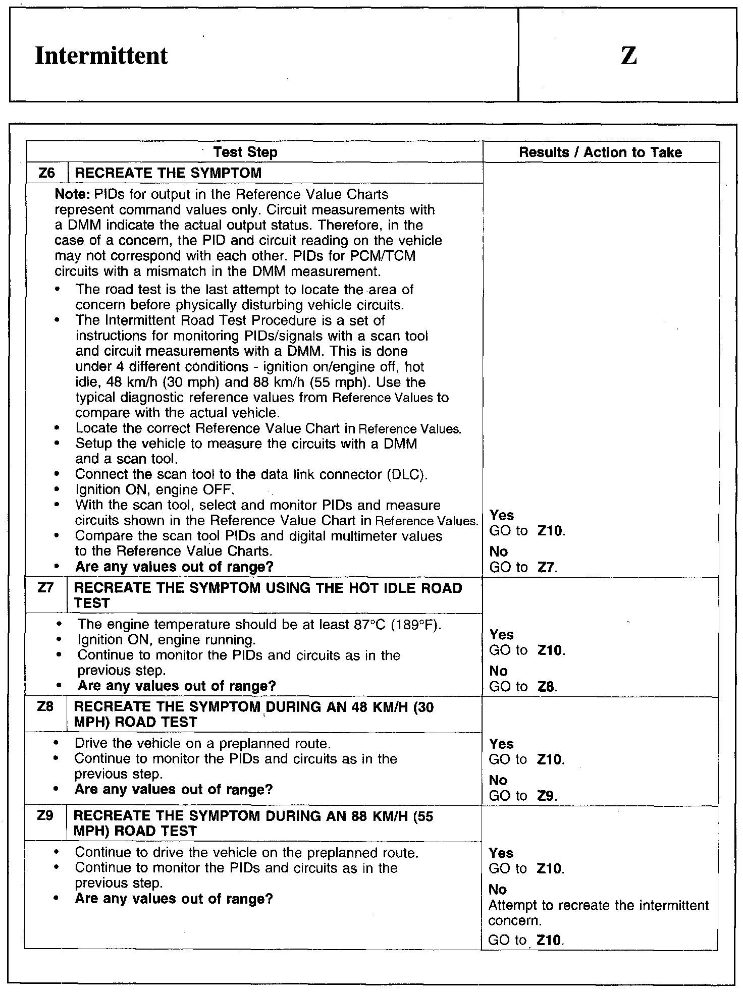 Test Z: Intermittent