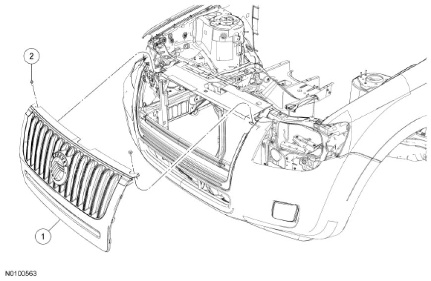5. Push outward on the 12 radiator grille clips to release the radiator grille from the bumper cover and remove the radiator grille.