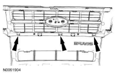4. Release the 3 radiator grille retaining clips and remove the radiator grille from the fascia.