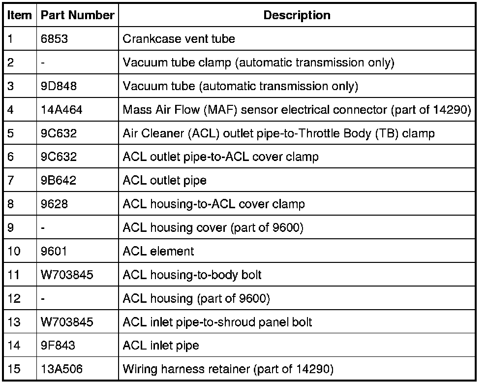 Air Cleaner Assembly, Intake Pipe and Outlet Pipe