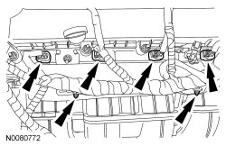 41. Remove the 8 bolts (3 shown) and position the intake manifold aside.