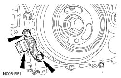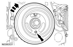 NOTICE: The crankshaft sprocket diamond washer may come off with the crankshaft pulley. The diamond washer must be replaced; remove and discard the diamond washer. If the diamond washer is not installed, engine damage may occur.
