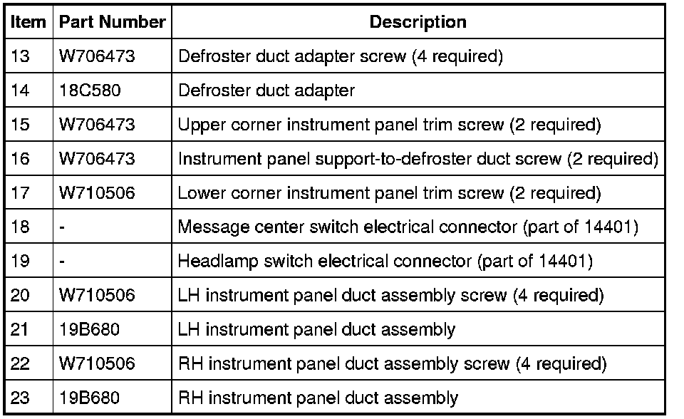 18. NOTE: The instrument panel trim will need to be positioned away from the instrument panel support to access the LH duct assembly upper center screw.
