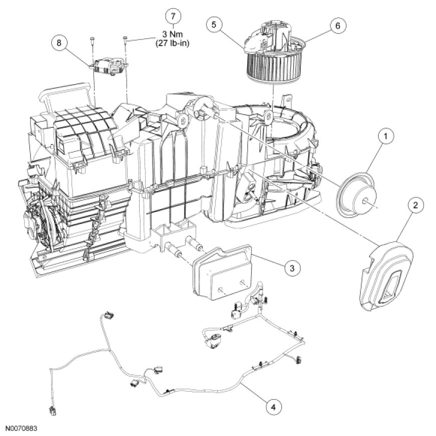 7. Detach the heater core and evaporator core housing wire harness from the air inlet duct.