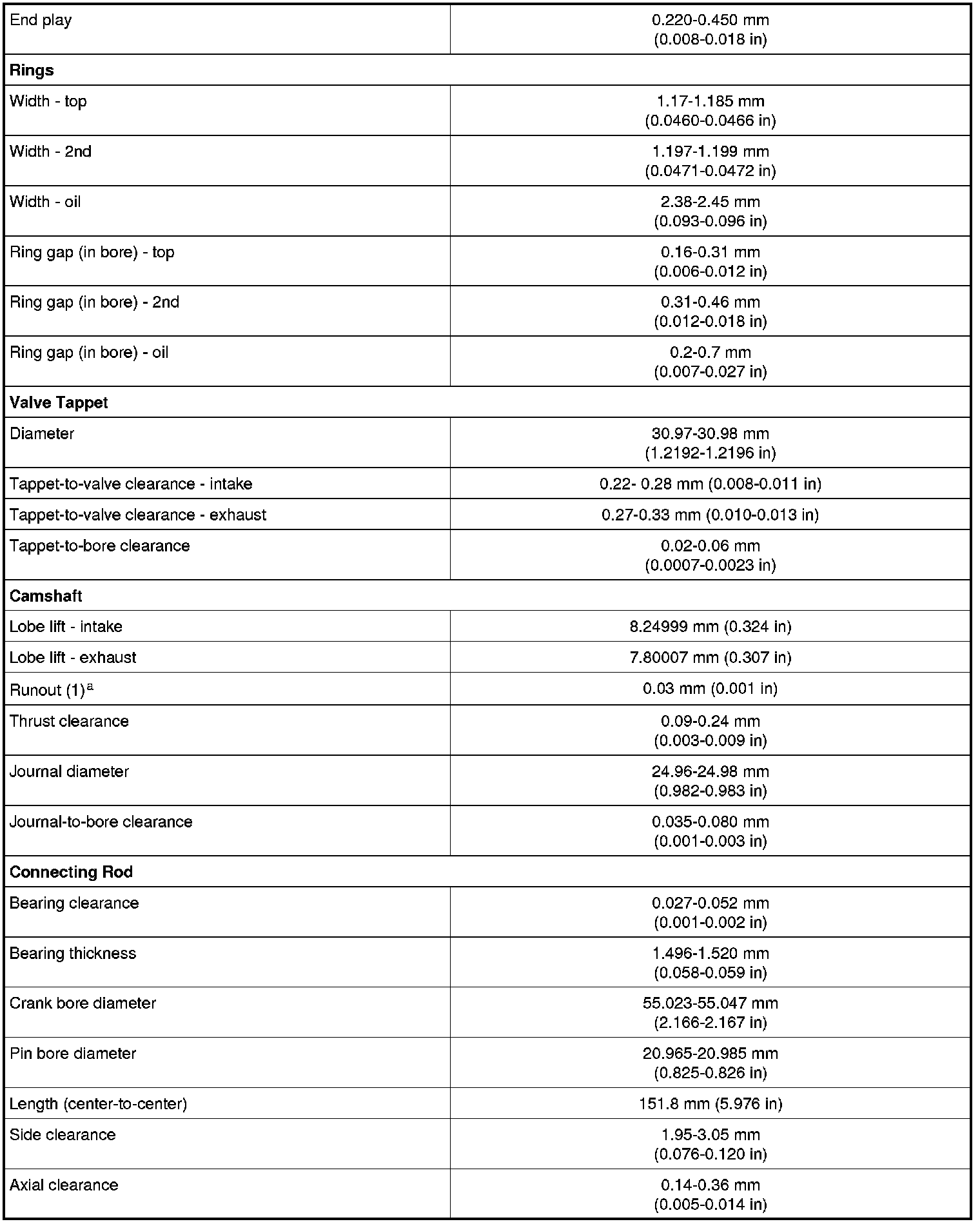 Camshaft Gear/Sprocket Torque Specifications