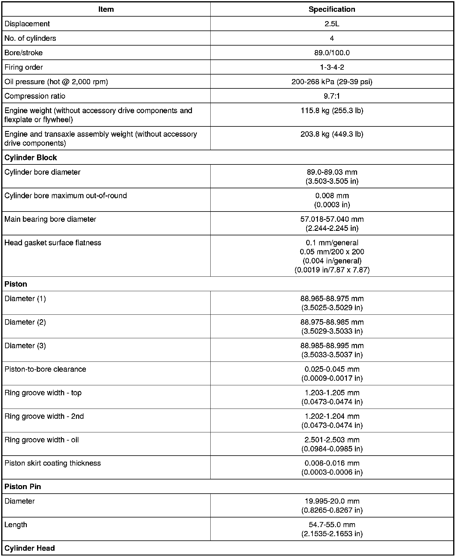 Exhaust Manifold Specifications