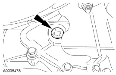 4. NOTE: The fluid level must be even with the bottom of the filler hole with the vehicle on flat, level ground.