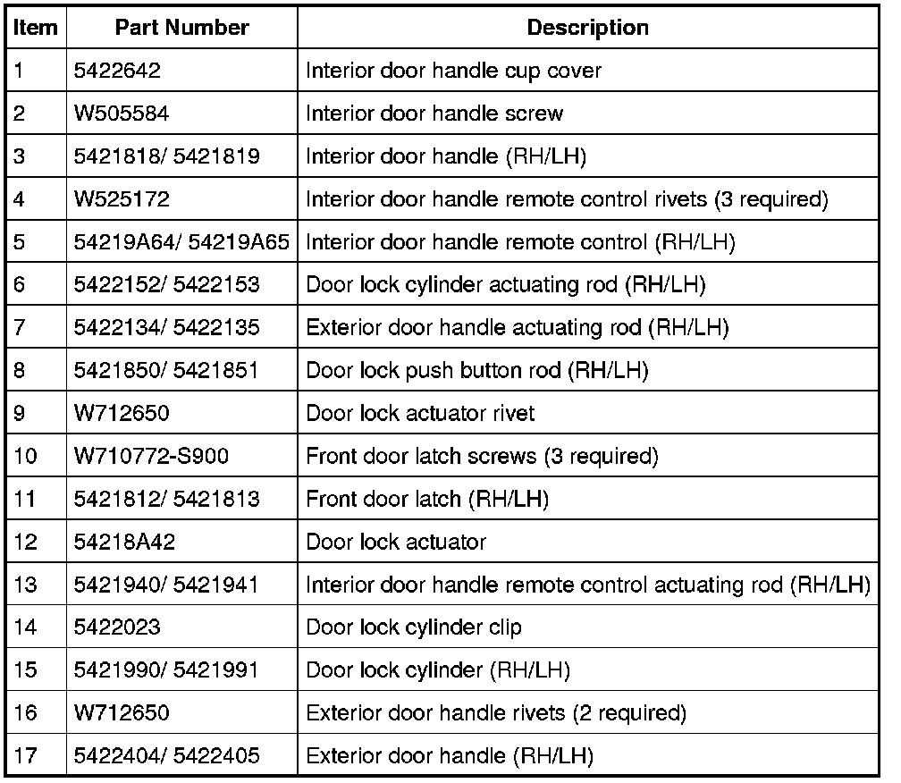 Front Door Handles, Locks and Latches - Exploded View