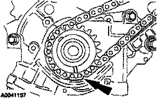 Install the RH timing chain on the camshaft sprocket, aligning the colored (marked) link with the timing marks on the sprocket.