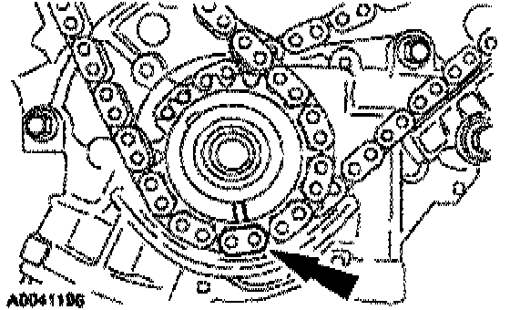 Install the LH timing chain on the sprocket, aligning the colored (marked) link with the timing marks on the sprocket.