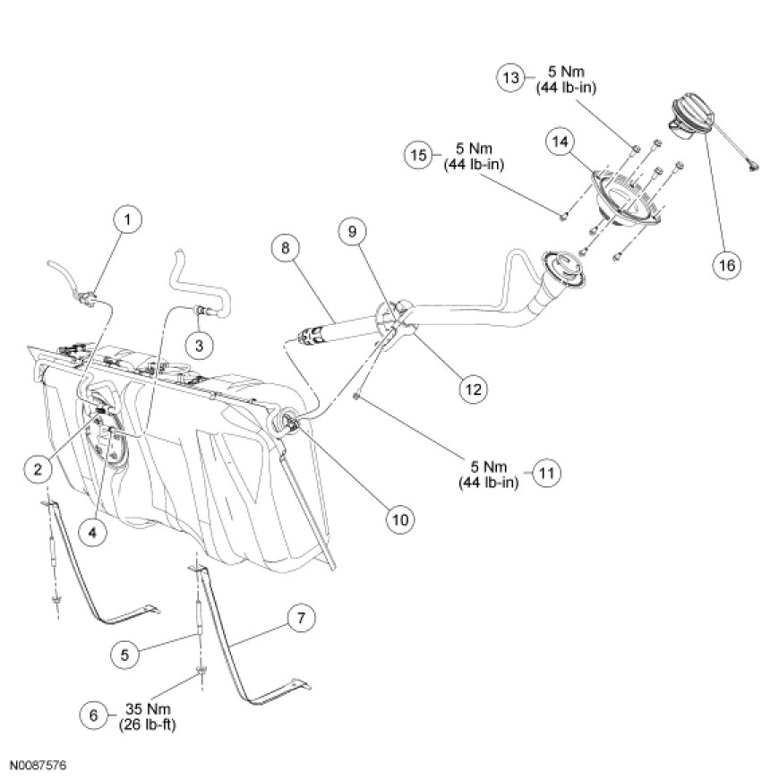 Fuel Tank and Filler Pipe - Exploded View