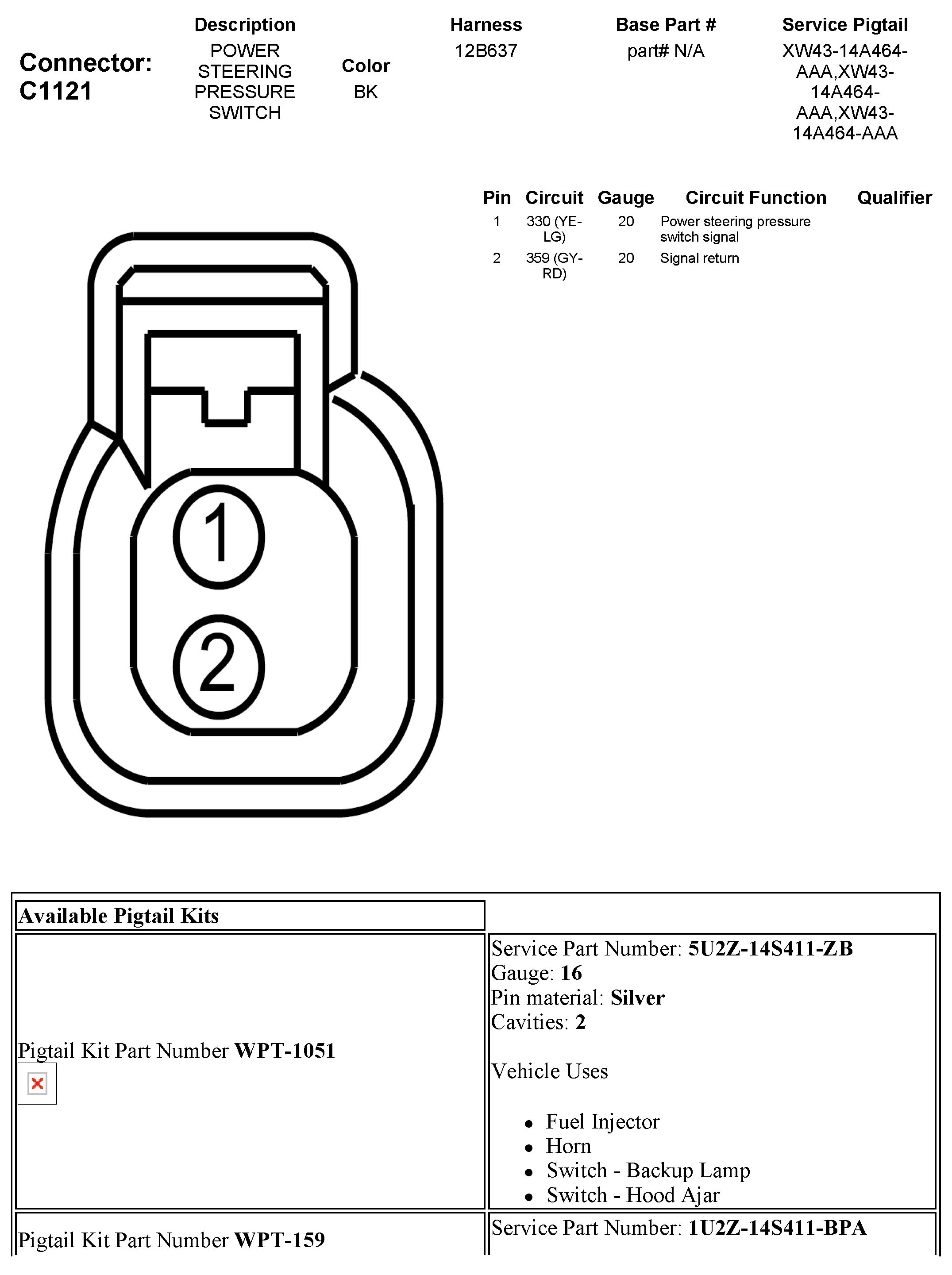 Power Steering Pressure Switch: Diagrams