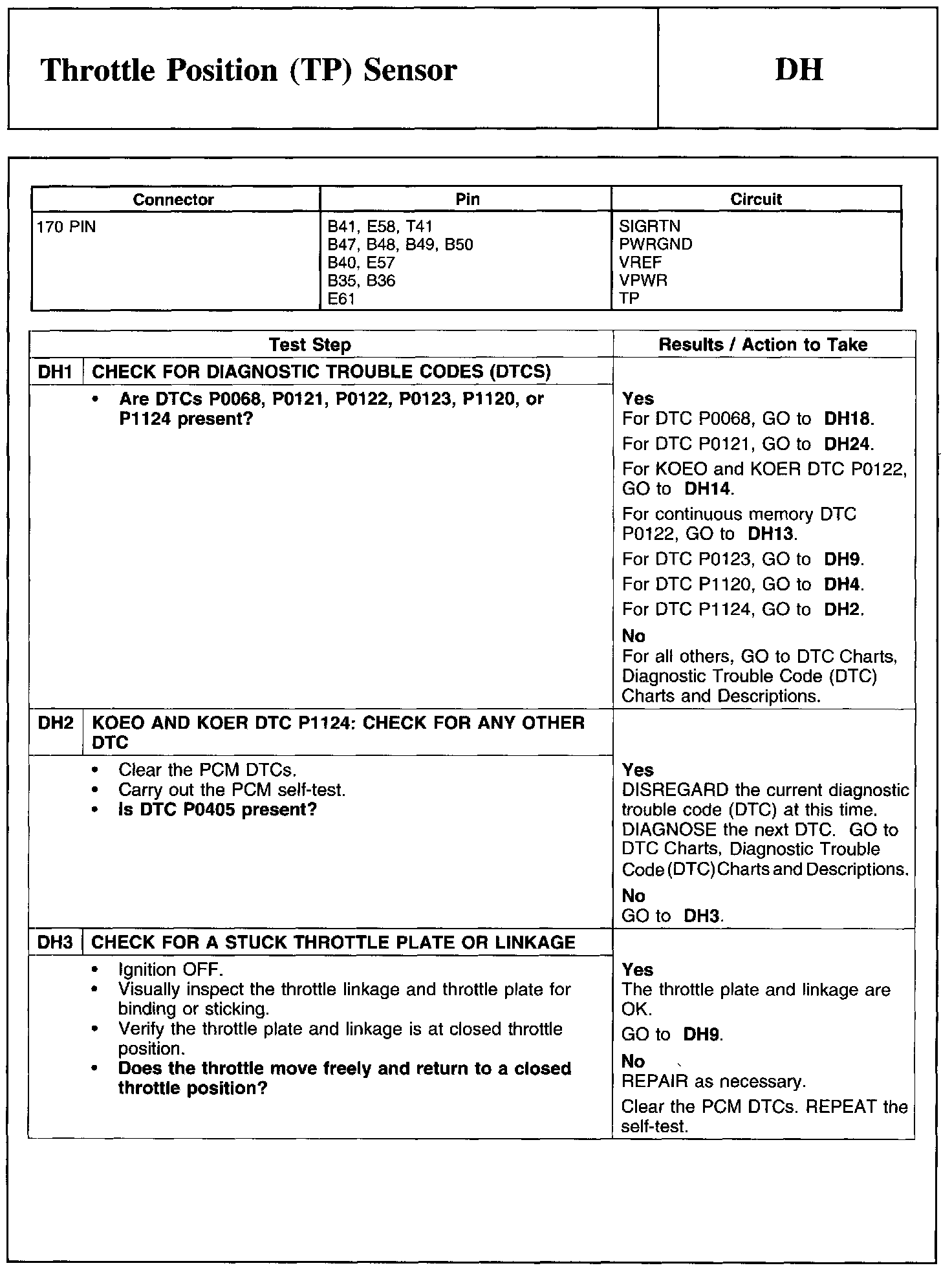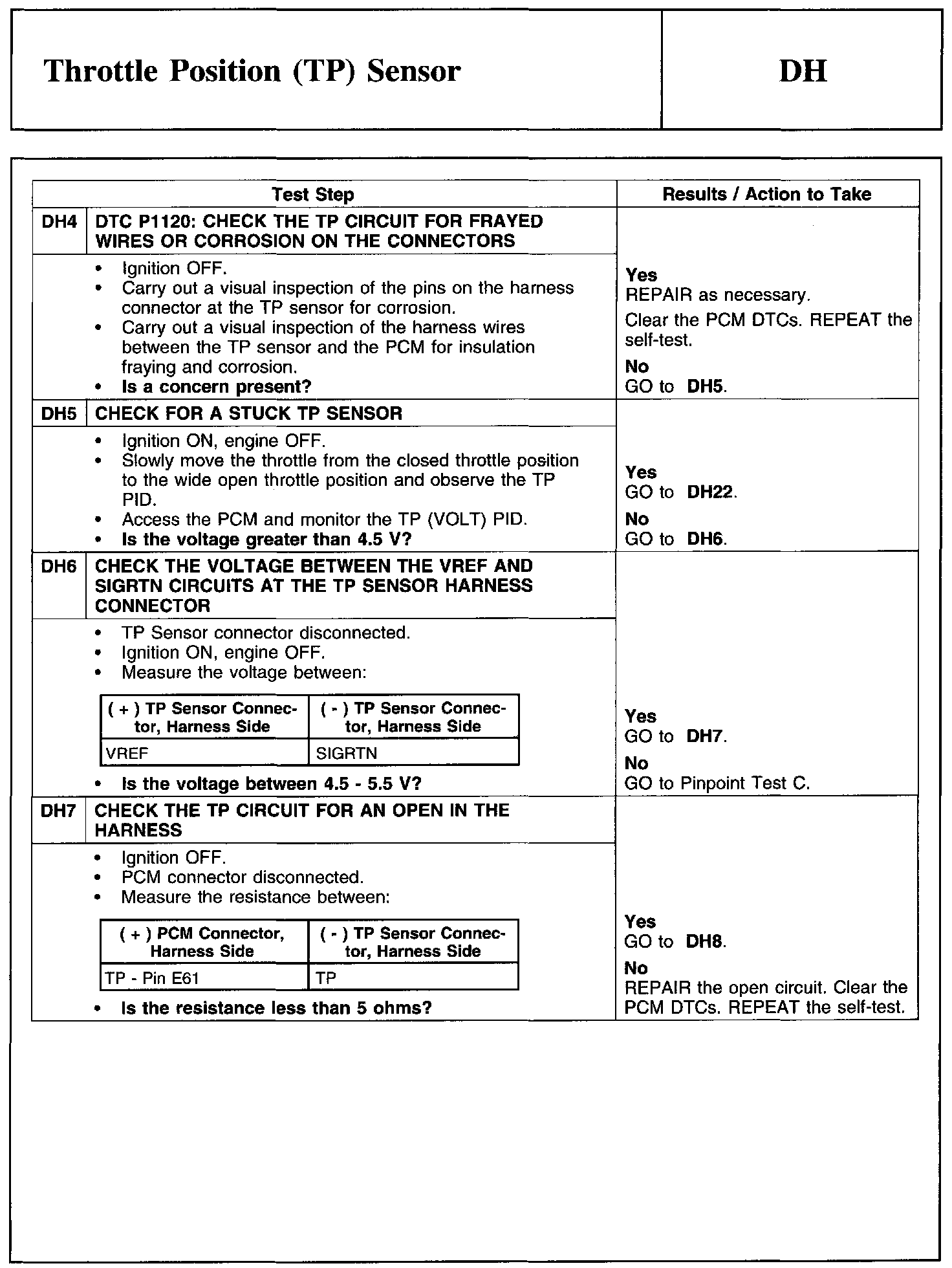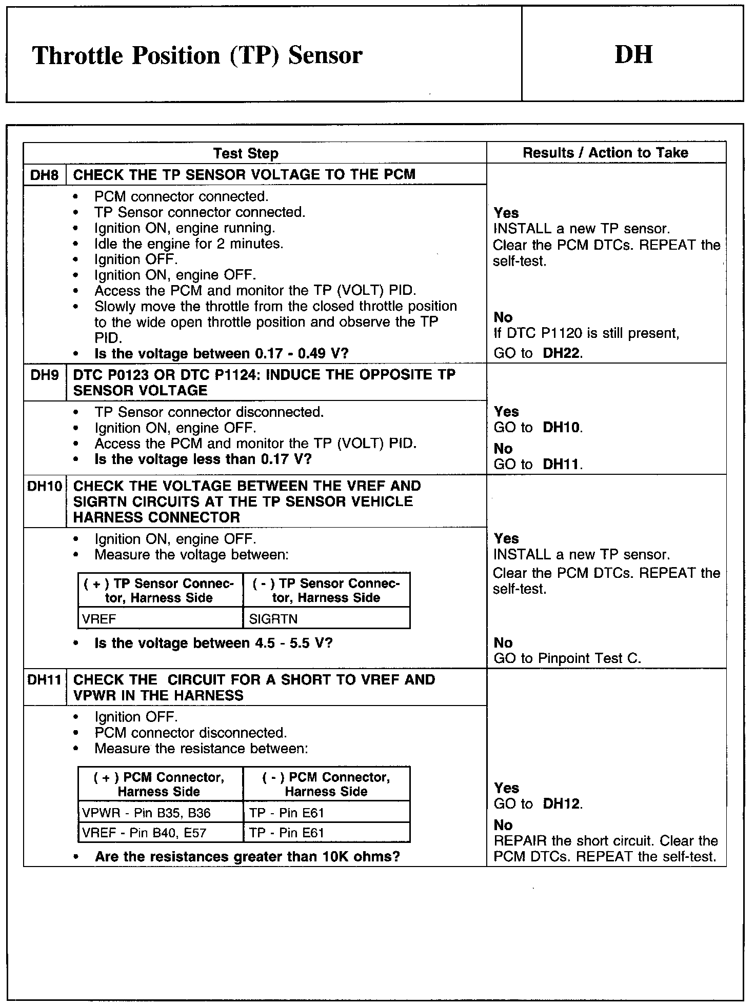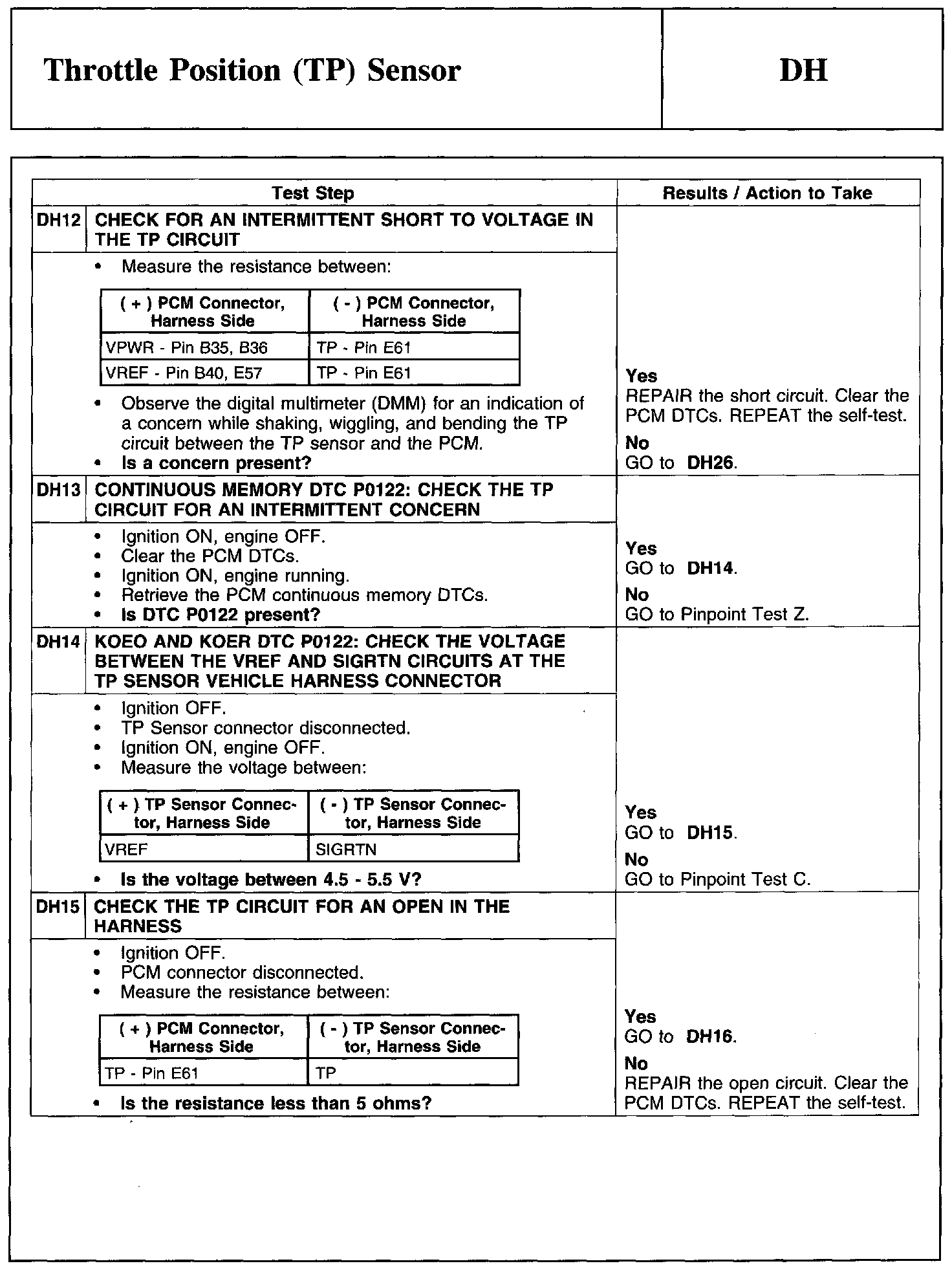 Test DH: Throttle Position (TP) Sensor