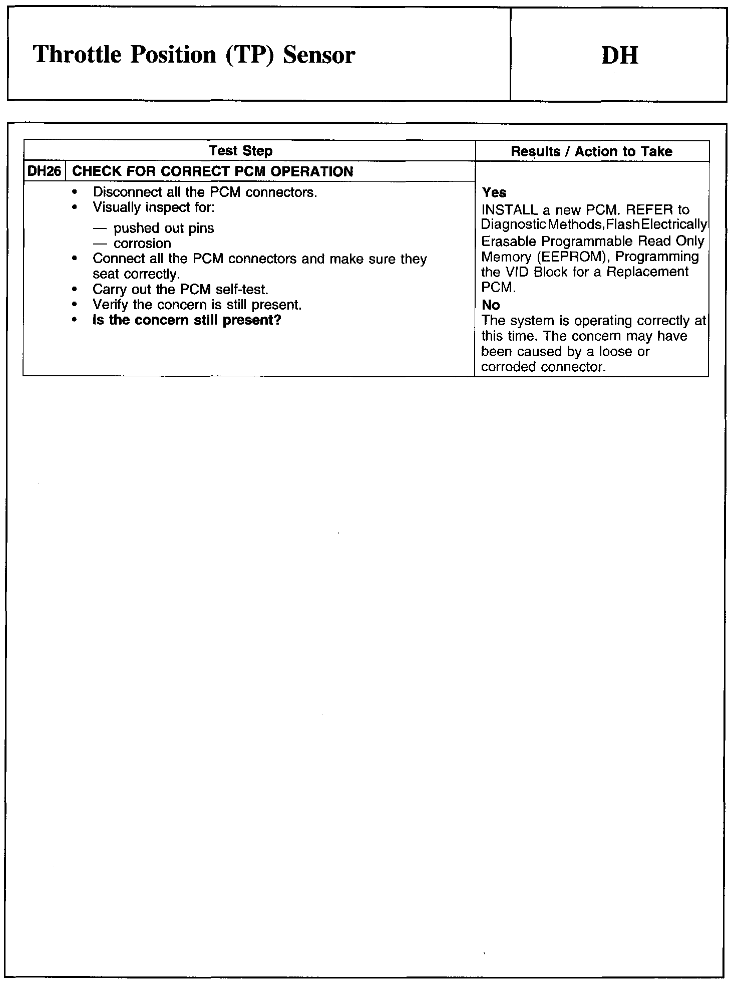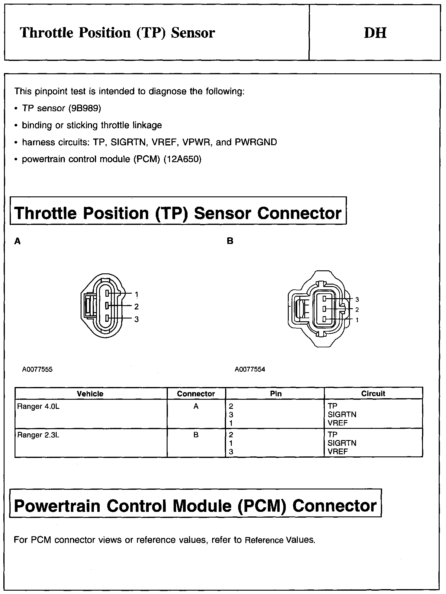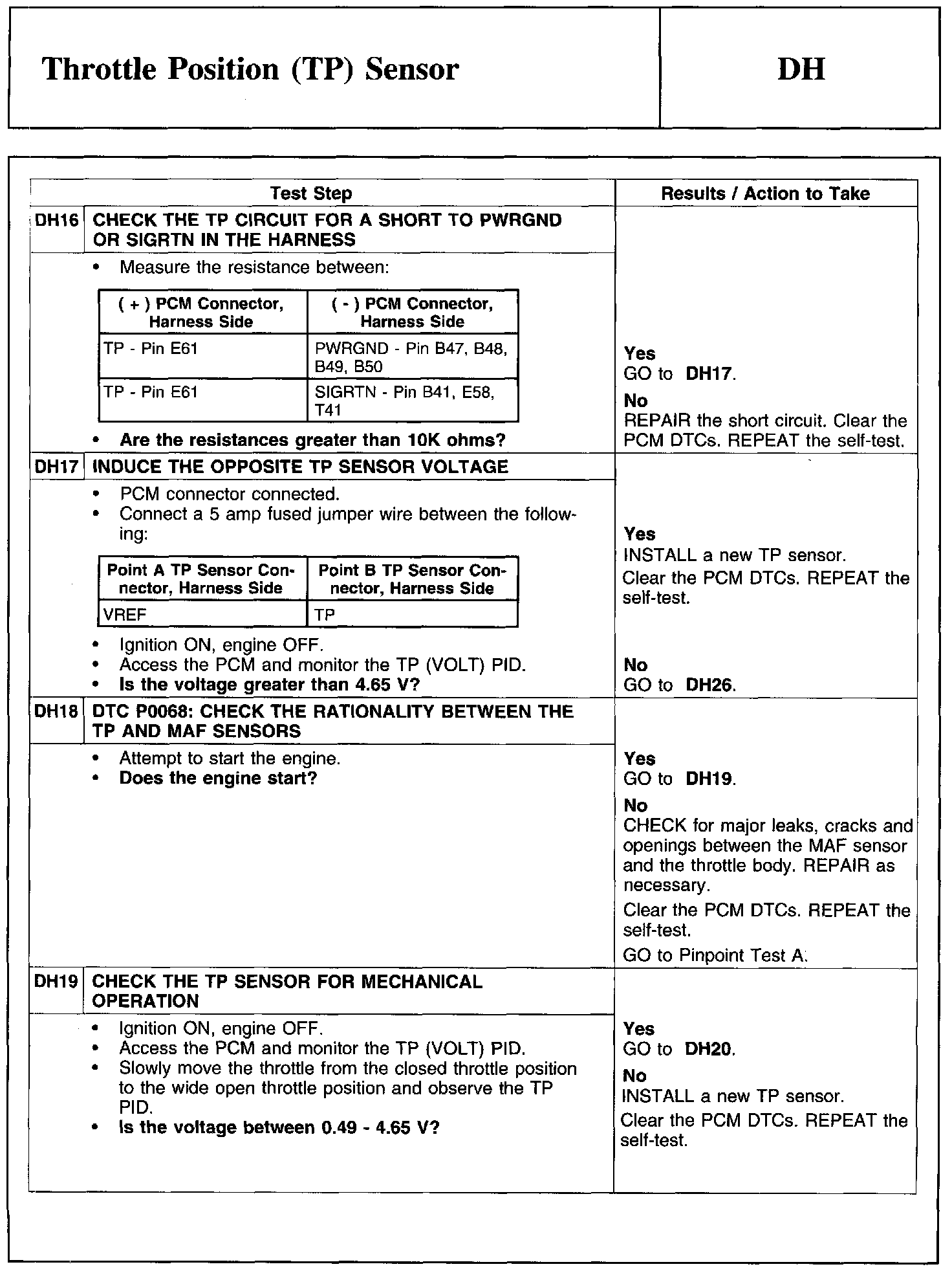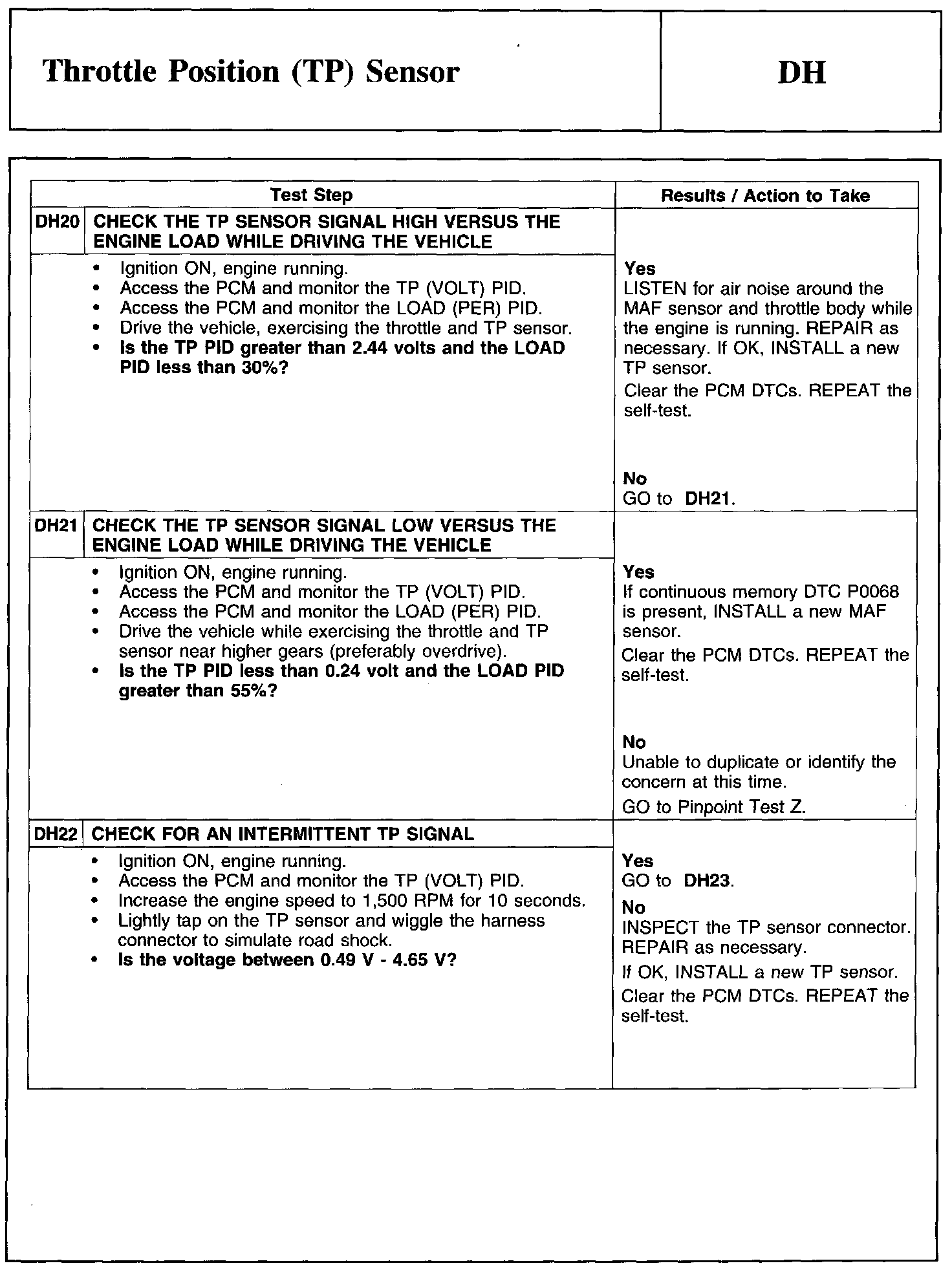 Test DH: Throttle Position (TP) Sensor