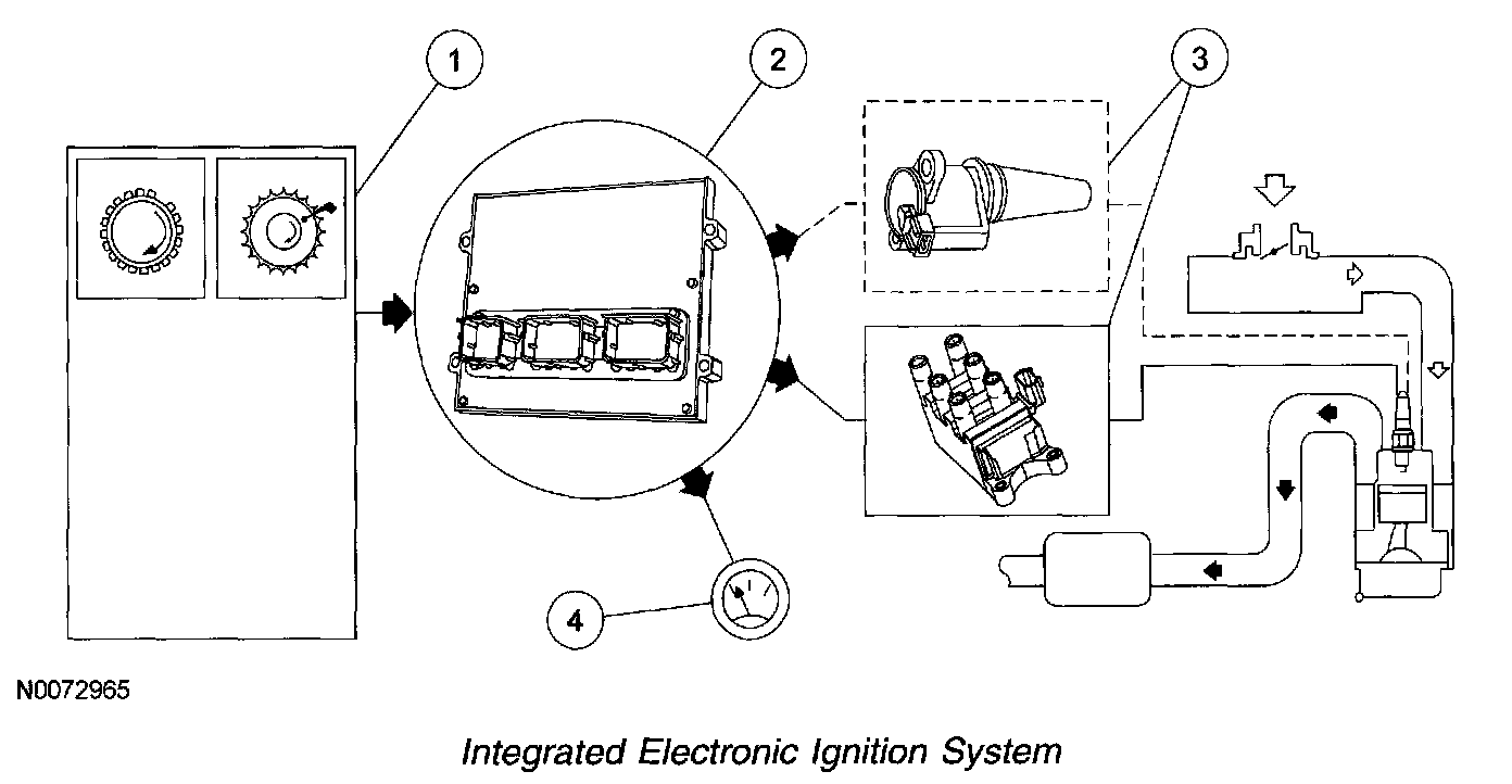 The ignition system is designed to ignite the compressed air/fuel mixture in an internal combustion engine by a high voltage spark delivered from an ignition coil controlled by the powertrain control module (PCM).