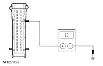 - Measure the resistance between DDM C501a-23, circuit 1010 (DB/OG), harness side and ground.